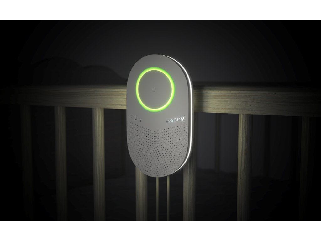 Nanny je pametni monitor dihanja, ki vas pokliče na pomoč takoj, ko se zdi, da nekaj ni v redu. Poleg tega vas bo opozoril v primeru morebitnega zastoja dihanja zaradi bruhanja. Zelena lučka utripa, kadar koli vaš dojenček vdihne. Če dojenček ne vdihne 20 sekund ali če se frekvenca njegovega dihanja zniža pod 8 vdihov na minuto, bo utripnila rdeča lučka in zaslišal se bo alarm.