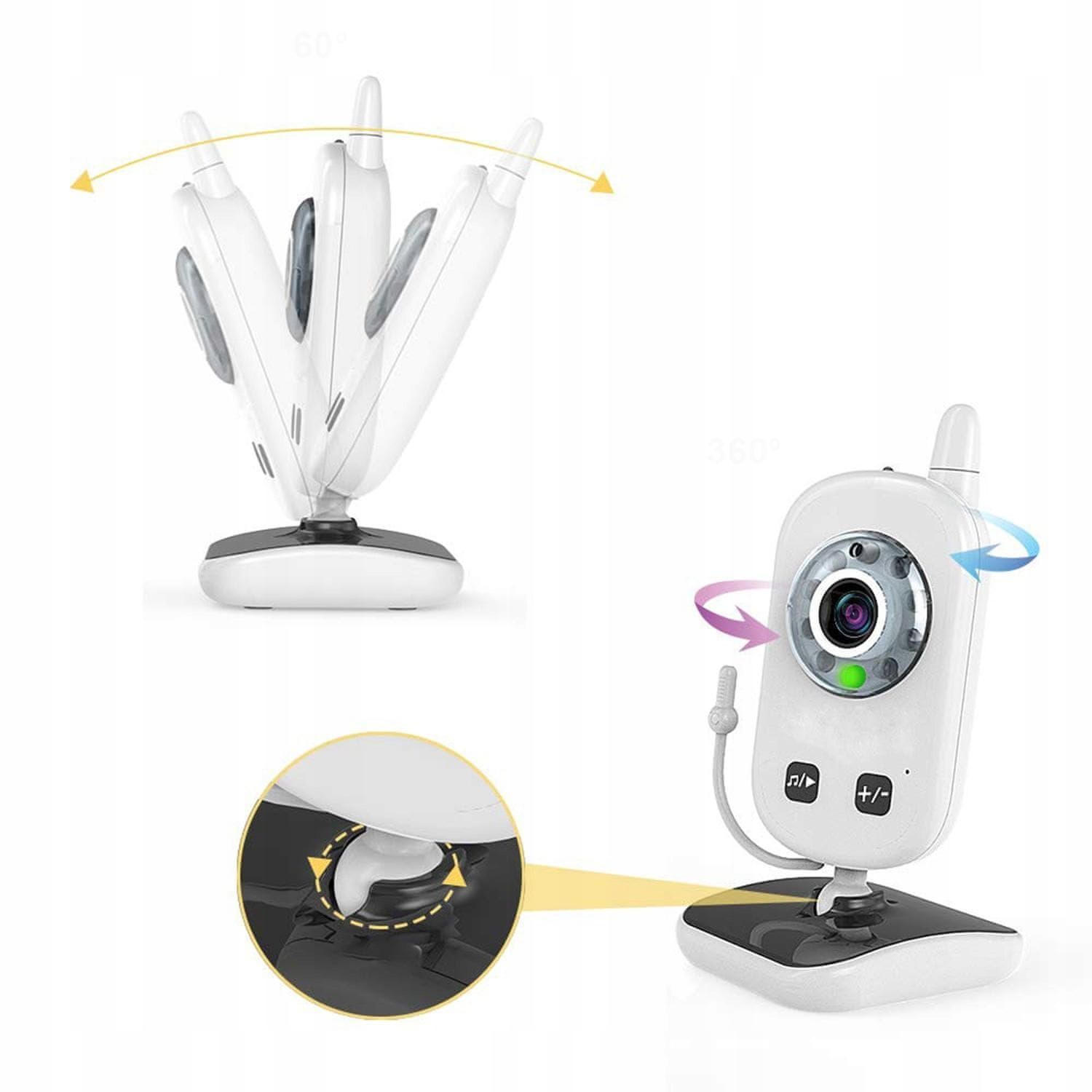 Varuška je opremljena z napredno infrardečo funkcijo nočnega vida, ki vam omogoča jasno spremljanje stanja spanja vašega dojenčka, tudi ko so luči ugasnjene. To staršem omogoča, da ponoči opazujejo svoje otroke, ne da bi morali vstopiti v sobo in jih zbuditi.
