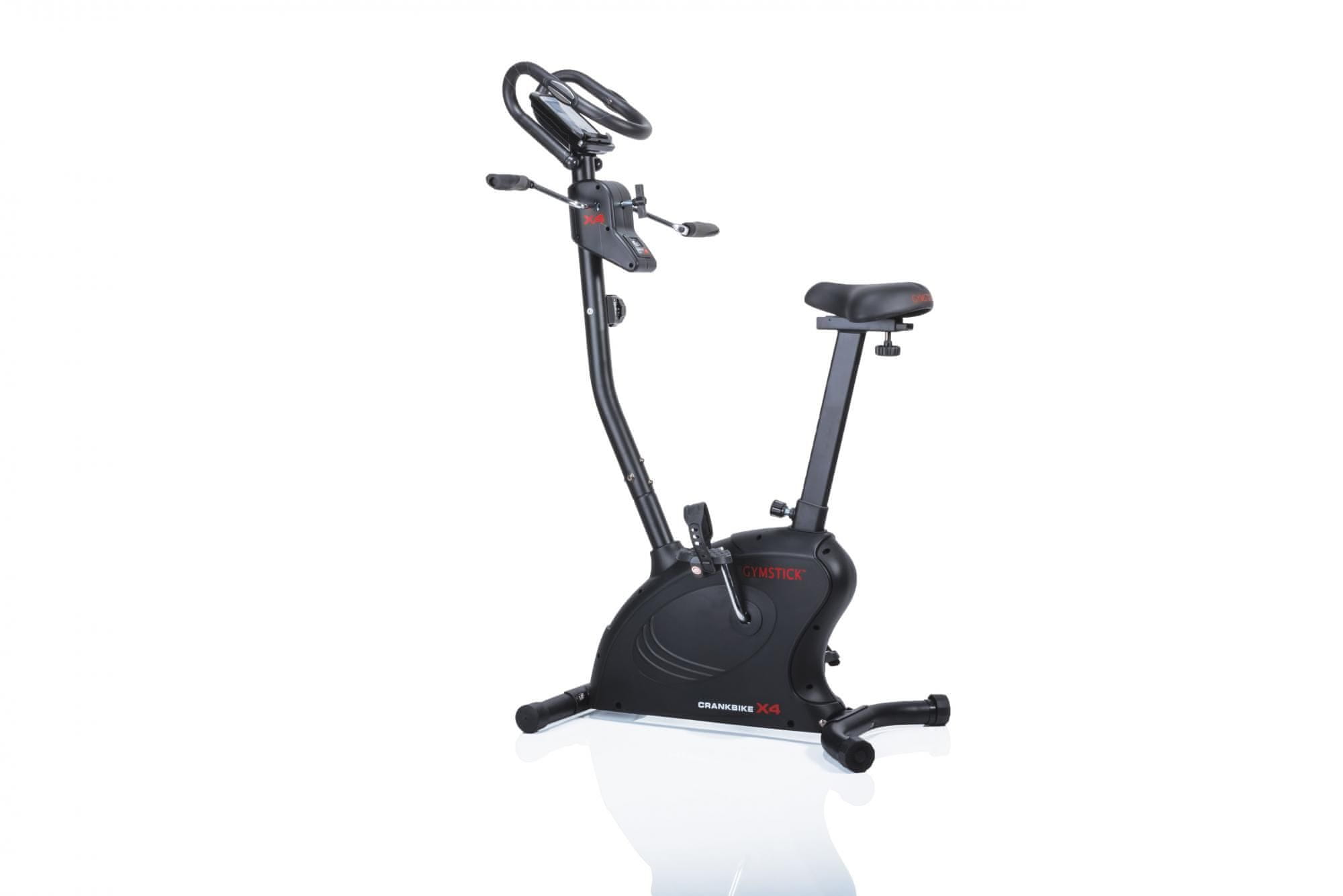 Crank bike X4 je Gymstickova inovacija. Kolesa ne poganjate zgolj z nogami, ampak tudi z rokami. Tako je vadba do 40 % bolj učinkovita kot na klasičnem kolesu. Izbirate lahko med vadbo samo z nogami, samo z rokami ali kombinacijo. Poleg rok in nog se krepijo tudi mišice trebuha. Odličen pripomoček za izgubljanje teže.