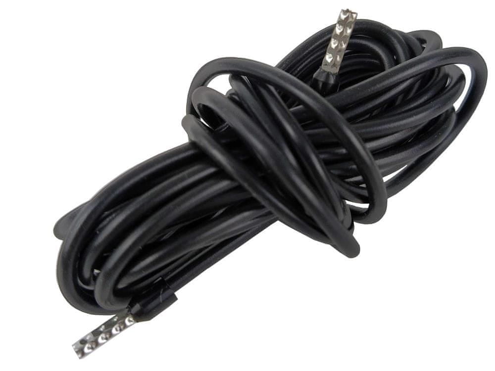Enožilni, s prečnim prerezom 0,75 mm² , v črni izolaciji, zaključen z aluminijastimi tulci , zaradi česar se kabel ne cefra.