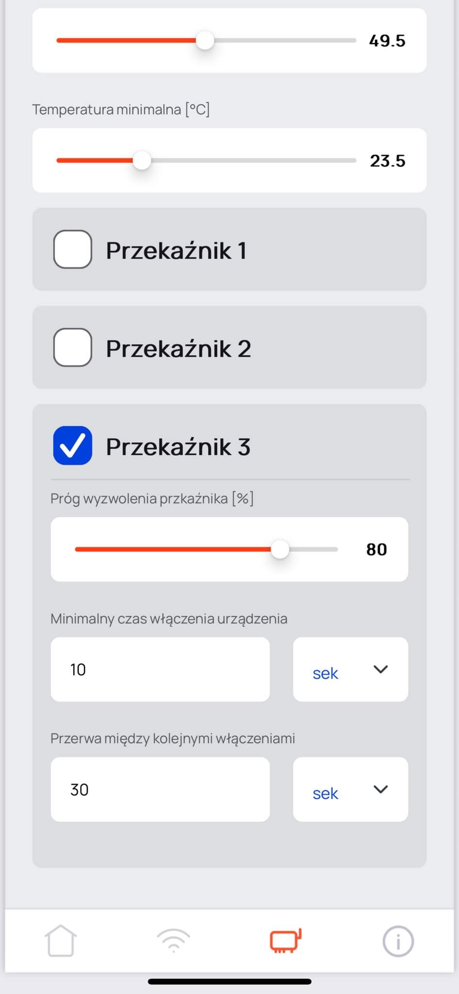 Načinoma ECO in COMFORT je dodana podpora za releje. Ko je v določeni fazi presežena uporabniško določena moč grelnika, se aktivira dodeljeni rele (prvi rele ustreza prvi fazi, drugi drugi, tretji pa tretji). Uporabnik nastavi minimalno trajanje delovanja posameznega releja ter minimalno pavzo pred naslednjim vklopom. Ti časi preprečujejo, da bi se povezana naprava pogosto vklapljala in izklapljala, kar bi lahko povzročilo poškodbe.