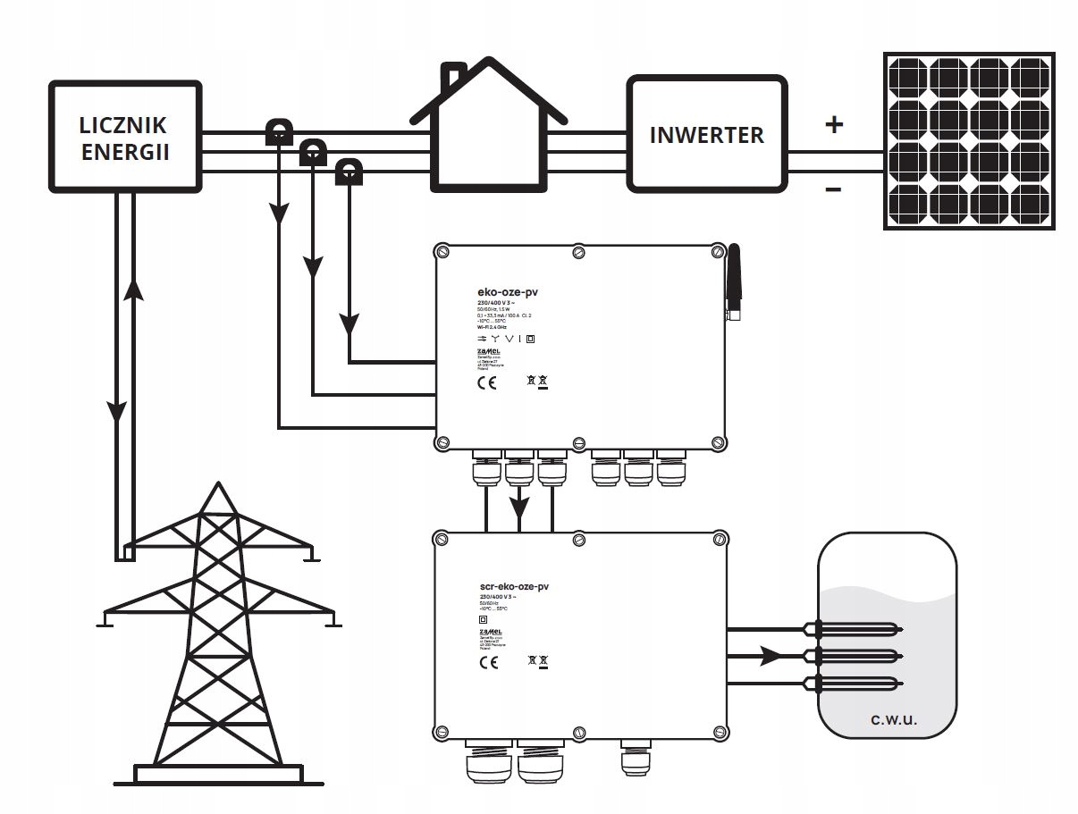 Ko naprava zazna povišanje napetosti, ki bi lahko povzročilo prekoračitev med konfiguracijo nastavljene ravni, aktivira priključeni sprejemnik – najpogosteje grelnik sanitarne vode z električnimi grelci. Takšen sprejemnik ustvarja uporovno obremenitev, ki olajša lokalno zmanjšanje napetosti.