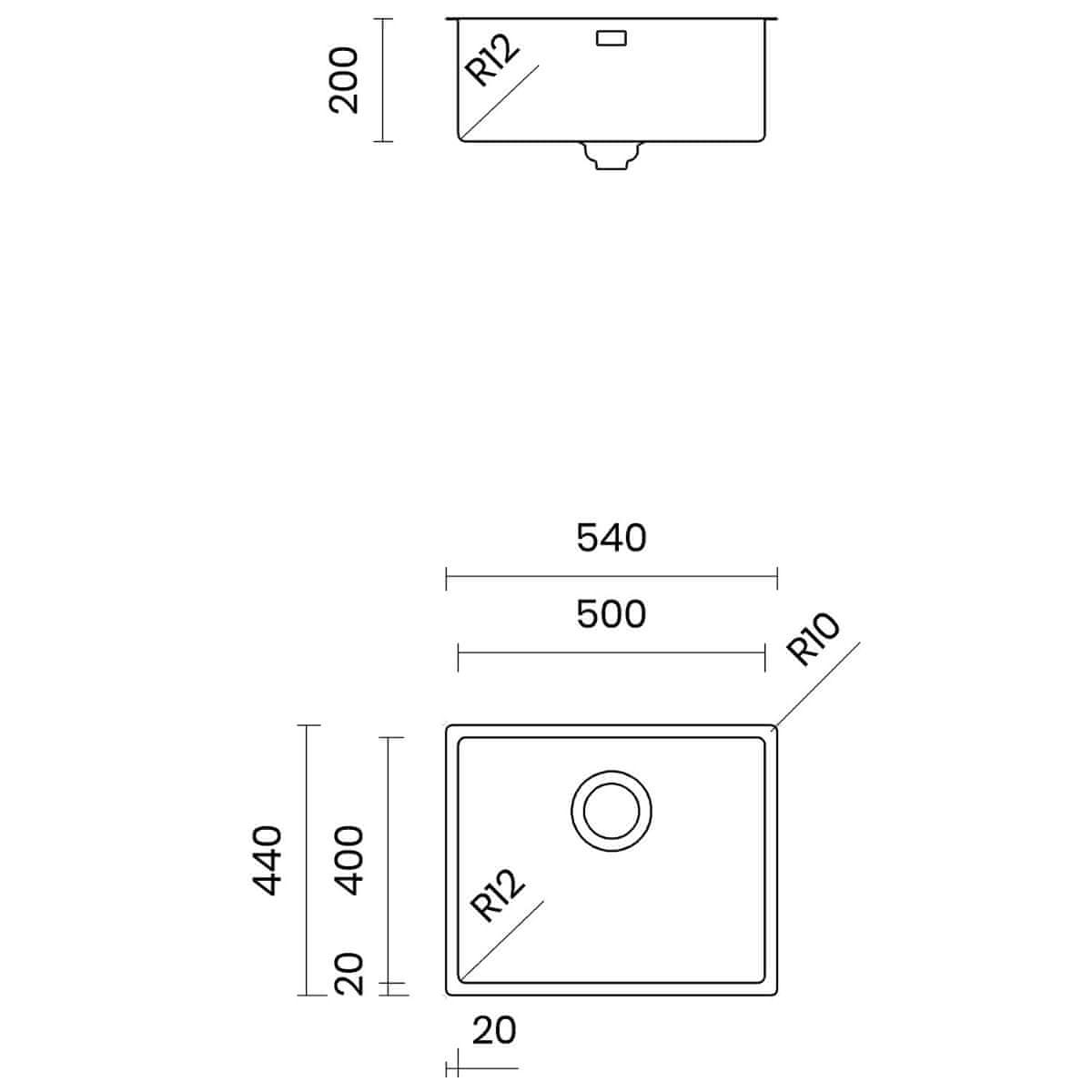 TASCA PURA 50 – kuhinjsko korito inox, poglobljen odtok in SatinPlus površina za omarice od 60 cm