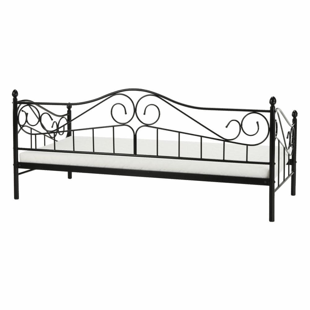 KONDELA Kovinska enojna postelja z letvico Daina 90x200 cm - črna