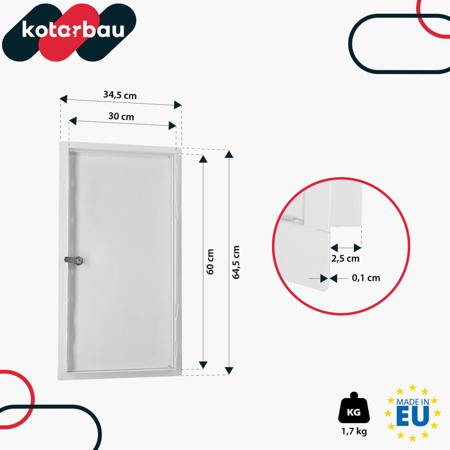 Ključavnica za inšpekcijska vrata, jeklo, kovina, bela, 30 × 60 cm Celoten opis