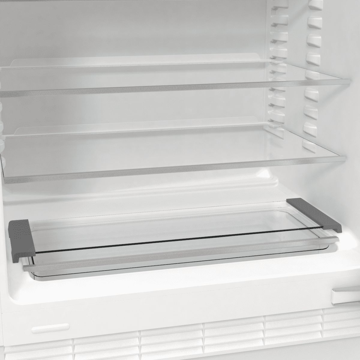 Vrata se lahko odprejo do kota 115° in se lahko v njih shranjuje tudi težje predmete zahvaljujoč masivnim nožnim tečajem. Poleg tega je olajšano tudi vstavljanje ali jemanje hrane. Samozapiralni tečaj bo samodejno zaprl vrata, če bojo ostala priprta.