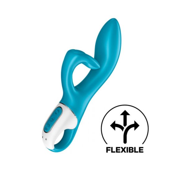 Rabbit vibrator Satisfyer Embrace Me turkizni barvi se ponaša z 2 močnima motorjema, ki zagotavljajta močne vibracije za tvoj klitoris in G-točko.