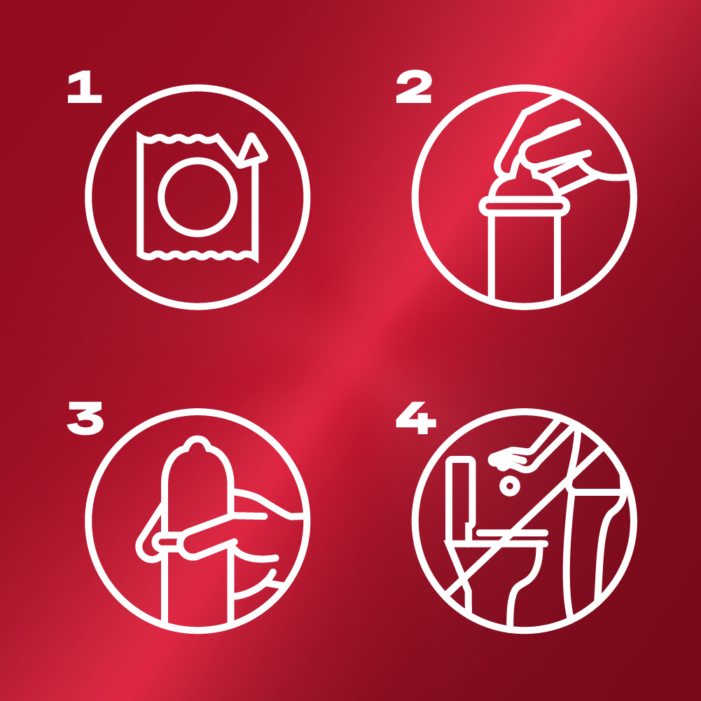 ① Nežno odstranite kondom iz embalaže.