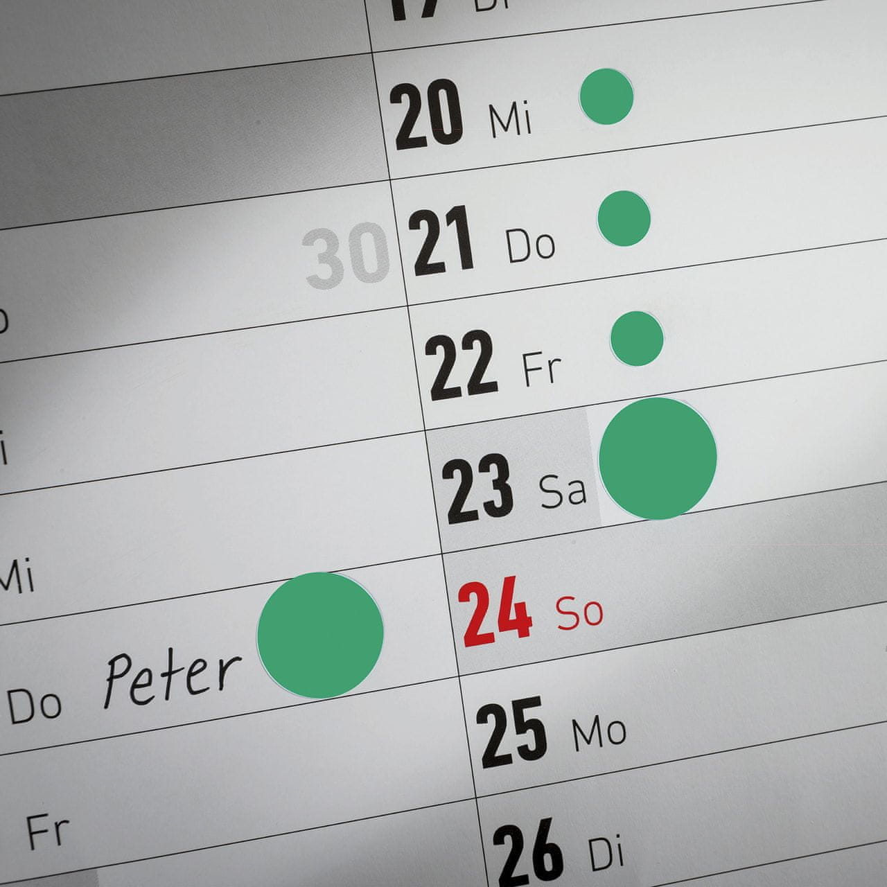 Z Avery Zweckform okroglimi markirnimi etiketami 3597 je označevanje, organiziranje in planiranje enostavno in pregledno. Svetlo zelene samolepilne pike so idealne za načrtovanje sestankov in počitnic na stenskih koledarjih ali za označevanje izdelkov, na primer nadzor kakovosti in zalog. So zelo opazne in omogočajo preprost pregled. Na voljo so v različnih barvah in velikostih, pakirane so v priročnih majhnih zavitkih. Označevanje z njimi je enostavno, po njih lahko ročno pišete, niso primerne za tiskanje. Premer nalepk je 18 mm, v zavitku je 96 pik. Markirne pike imajo odstranljivo lepilo in po odstranitvi ne puščajo ostankov.