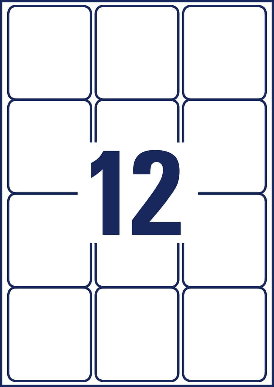 - 1200 belih etiket v velikosti 63.5 × 72 mm, primerne za naslove za ovojnice