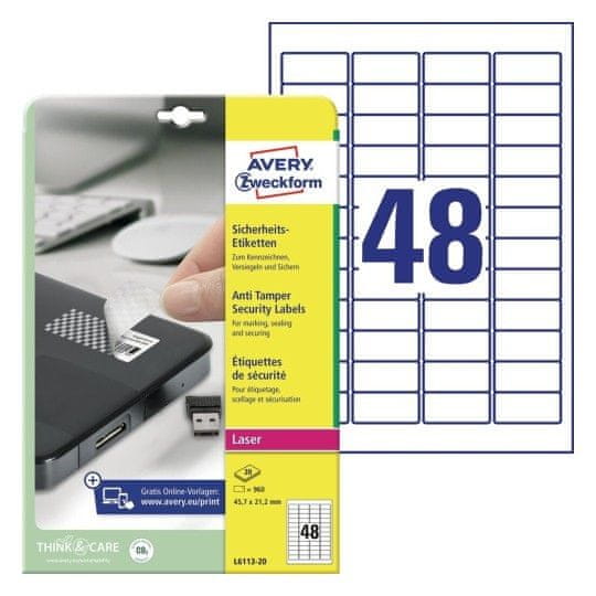 Avery Zweckform Etikete zweckform l6113 45,7x21,2mm zaščitne anti tamper 1/20