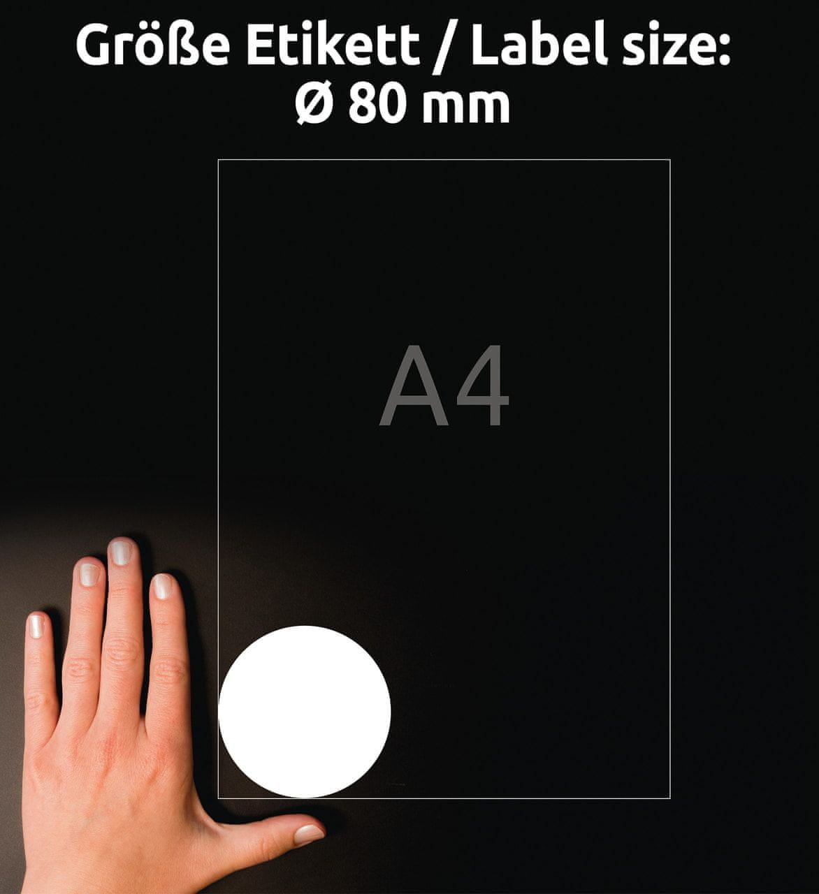 Avery Zweckform okrogle etikete 6229–10 imajo premer 80 mm in permanentno lepilo, ki ima dober oprijem na raznih podlagah. Zaradi posebne oblike so te nalepke primerne za opazno in elegantno označevanje raznih predmetov in embalaže. V zavitku je 60 etiket. Potiskate jih lahko z vsemi standardnimi tiskalniki. Za oblikovanje etiket priporočamo uporabo brezplačnega programa Avery Design & Print.