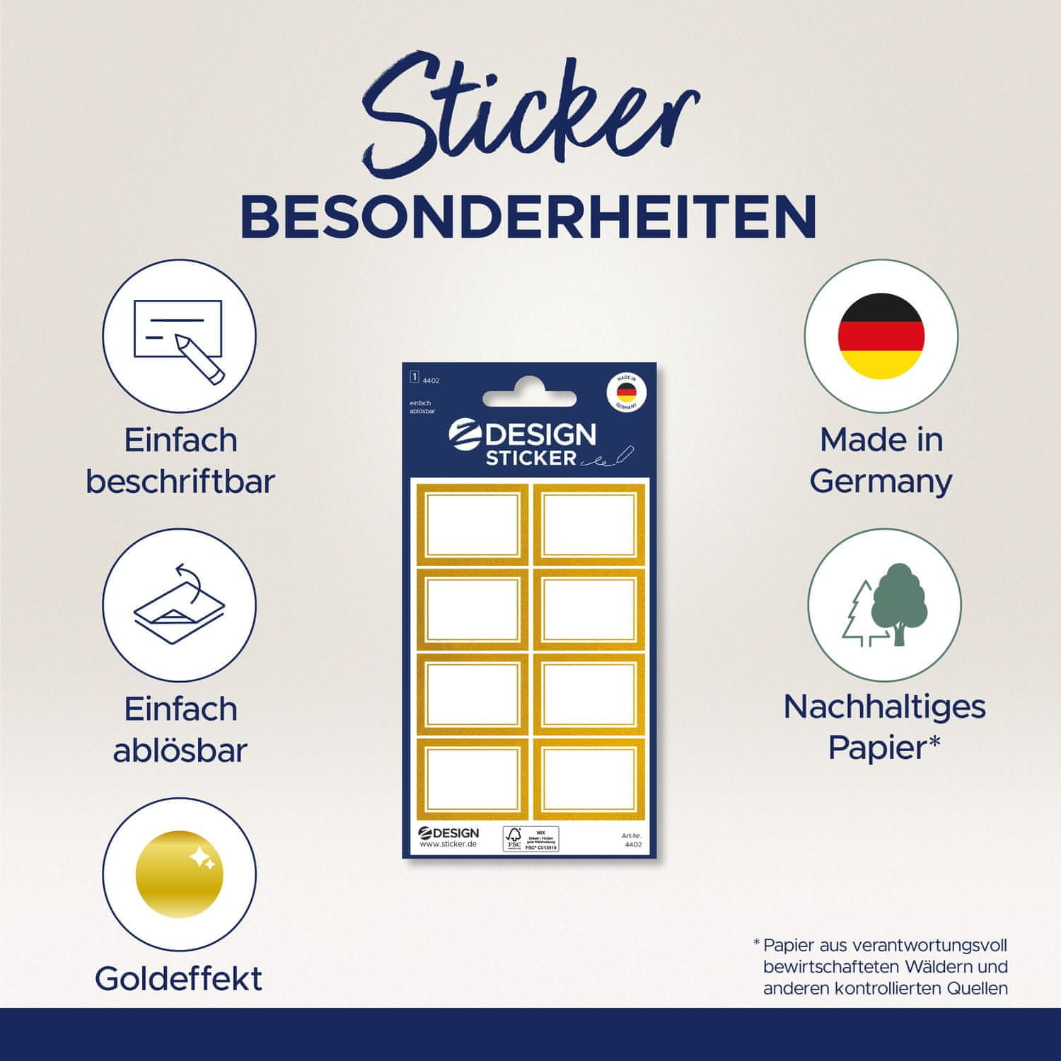 - 24 odstranljivih nalepk z zlatimi okvirji za ročno pisanje