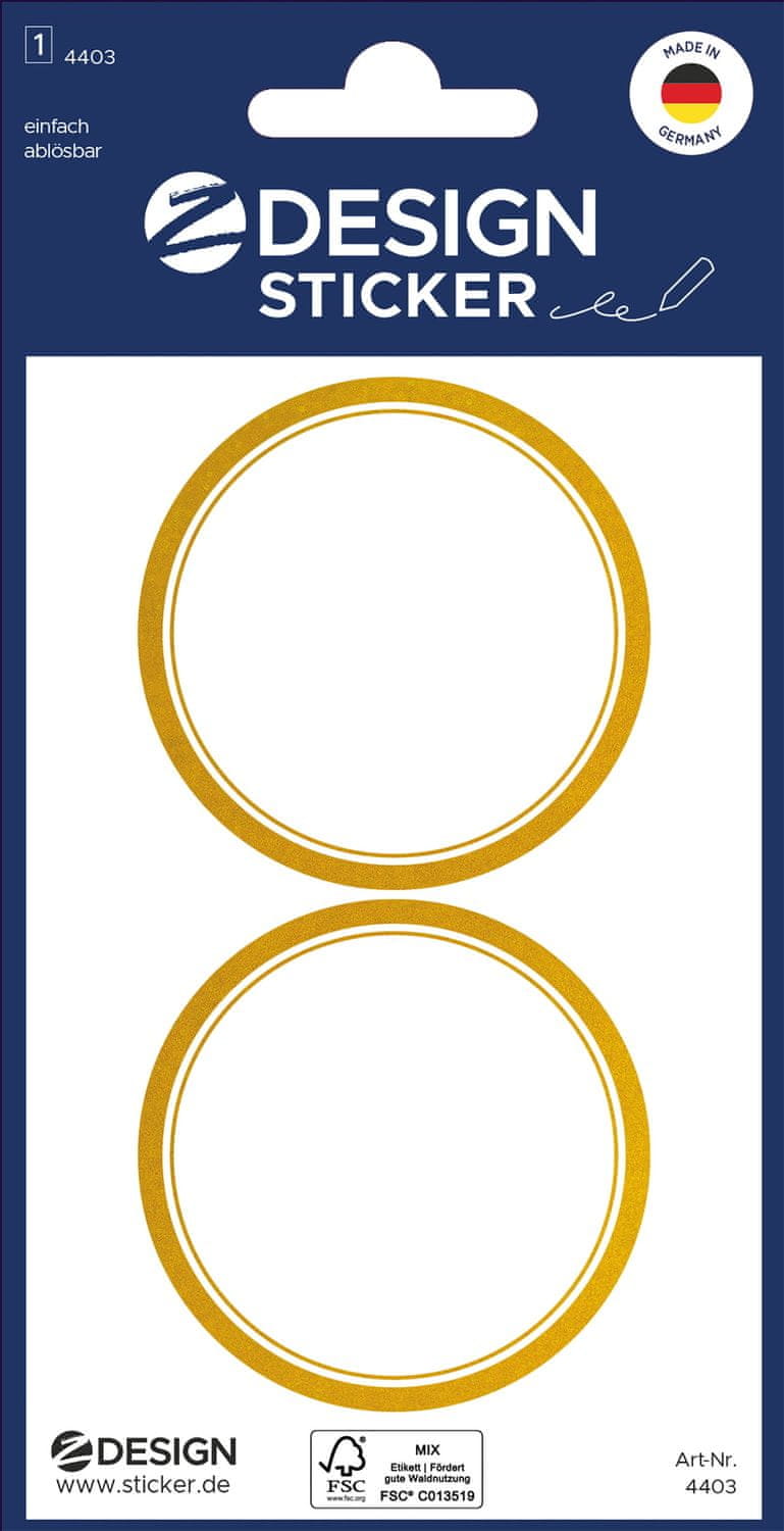 Avery Zweckform Z-Design nalepke za gospodinjstvo 4403, odstranljive, dekoracija in označitev kozarčkov, posod, škatel. 6 etiket/zavitek, motiv: zlata obroba, material: papir