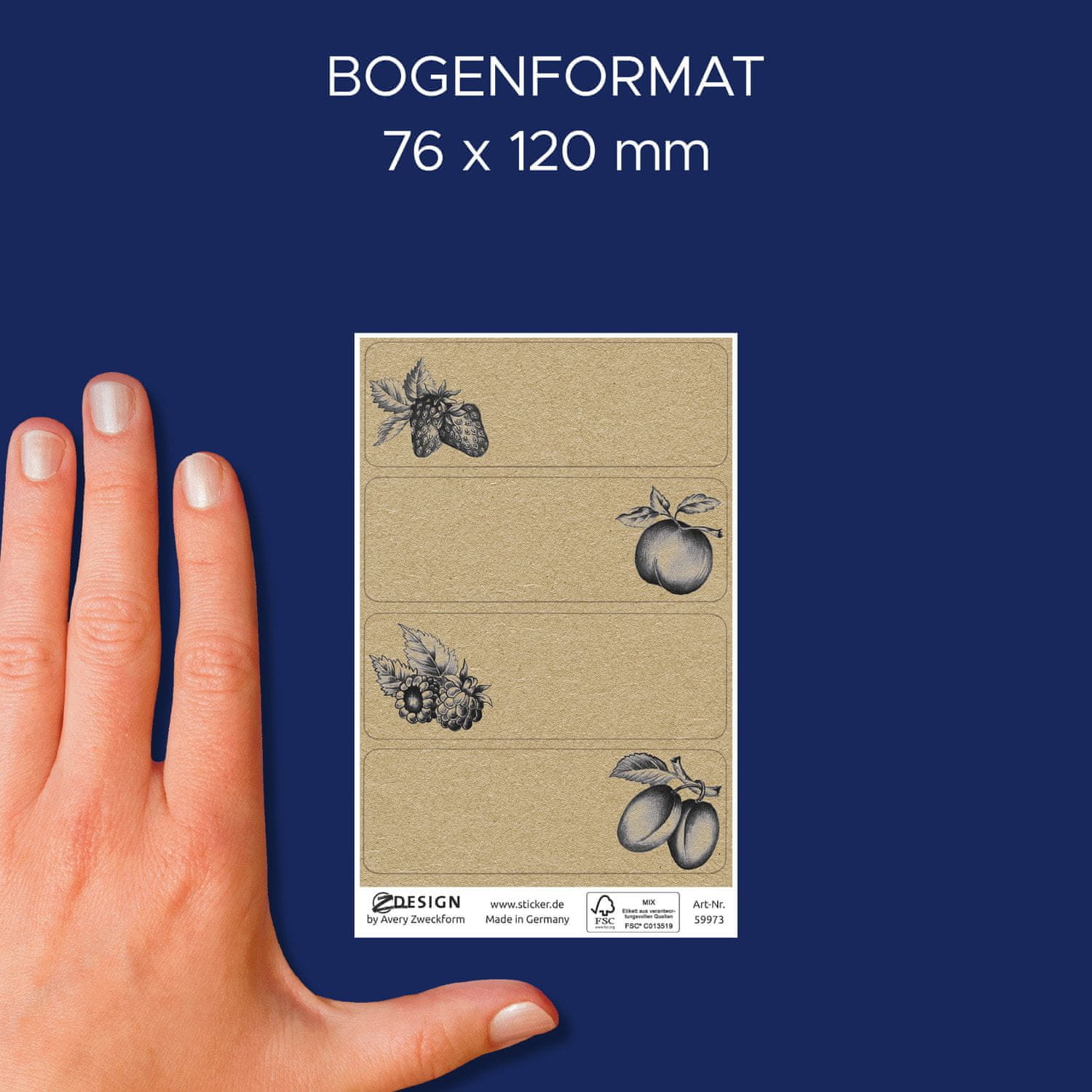 Avery Zweckform Z-Design nalepke za gospodinjstvo 59973, odstranljive, dekoracija in označitev kozarčkov, posod, škatel. 8 etiket/zavitek, motiv: sadje, material: papir