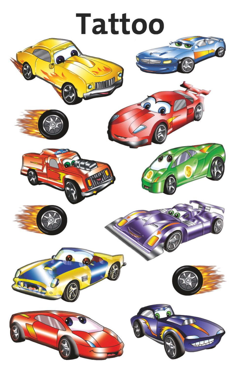 Začasna tetovaža z motivi dirkalnih avtomobilov. Enostavna uporaba in odstranitev. Dermatološko testirano in varno za otroke. Celoten opis