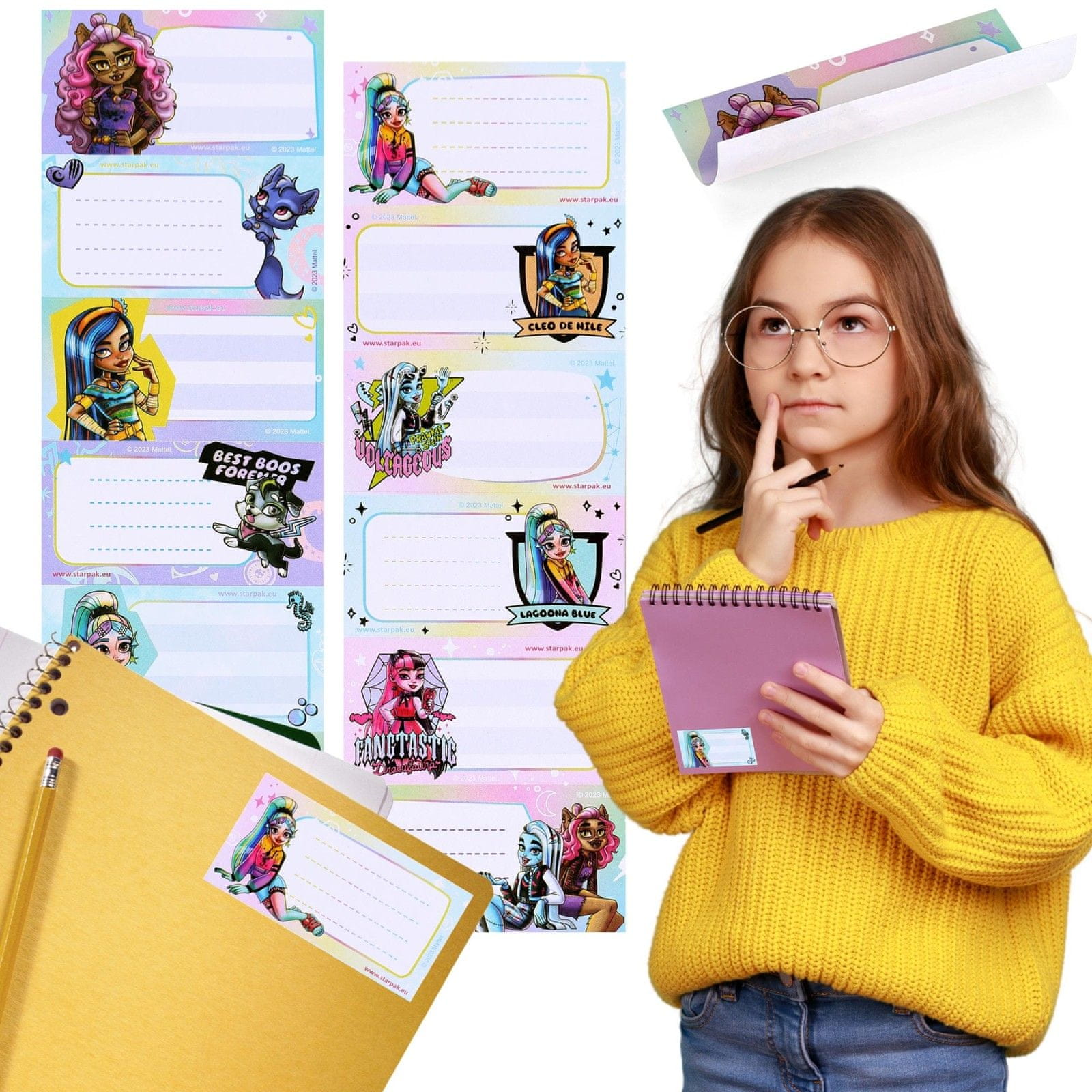 Stilske nalepke za zvezke z liki iz serije Monster High so odlična rešitev za otroke, ki želijo svojim šolskim potrebščinam dati edinstven značaj.