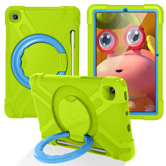 To etui je zasnovano tako, da vaši napravi zagotovi najvišjo raven zaščite pred vsakodnevnimi poškodbami. Sestavljeno je iz treh plasti, ki vključujejo trdno plastično ohišje iz PC in mehko silikonsko hrbtišče, kar učinkovito ščiti tablico pred praskami, udarci in vibracijami. Praktično etui ima vgrajeno, zložljivo stojalo, ki se vrti za 360°, kar omogoča nastavitev več kotov uporabe za optimalno udobje. Poleg tega natančno izdelani izrezi zagotavljajo popolno prileganje vratom in enostaven dostop do vseh gumbov, medtem ko edinstveno držalo za pisalo olajša shranjevanje.
