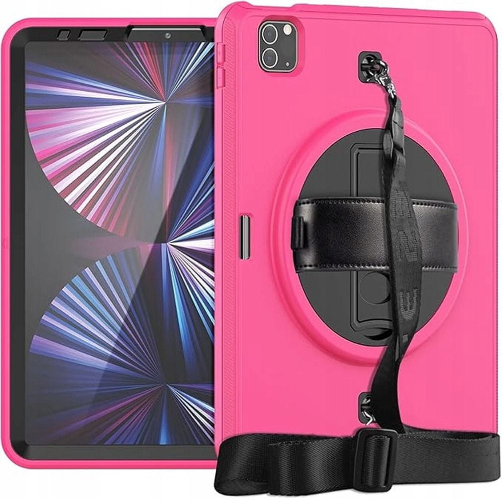 Nikcorp Vzdržljiv zaščitni etui za iPad Air 5/4 10.9 z vrtljivim stojalom, ročajem in ramenskim pasom, roza barve