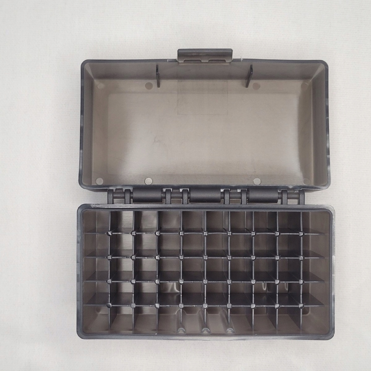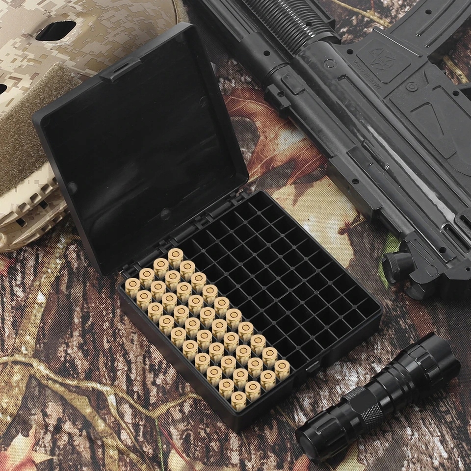 Zagotovite svojemu strelivu ustrezne pogoje shranjevanja z našo trpežno škatlo za strelivo kalibra 9 mm. Naša škatla je zasnovana z mislijo na maksimalno varnost in organizacijo. Vsak naboj ima svoj predal, ki ga ščiti pred vlago, prahom, poškodbami in nenamernim udarcem vžigalne pištole.