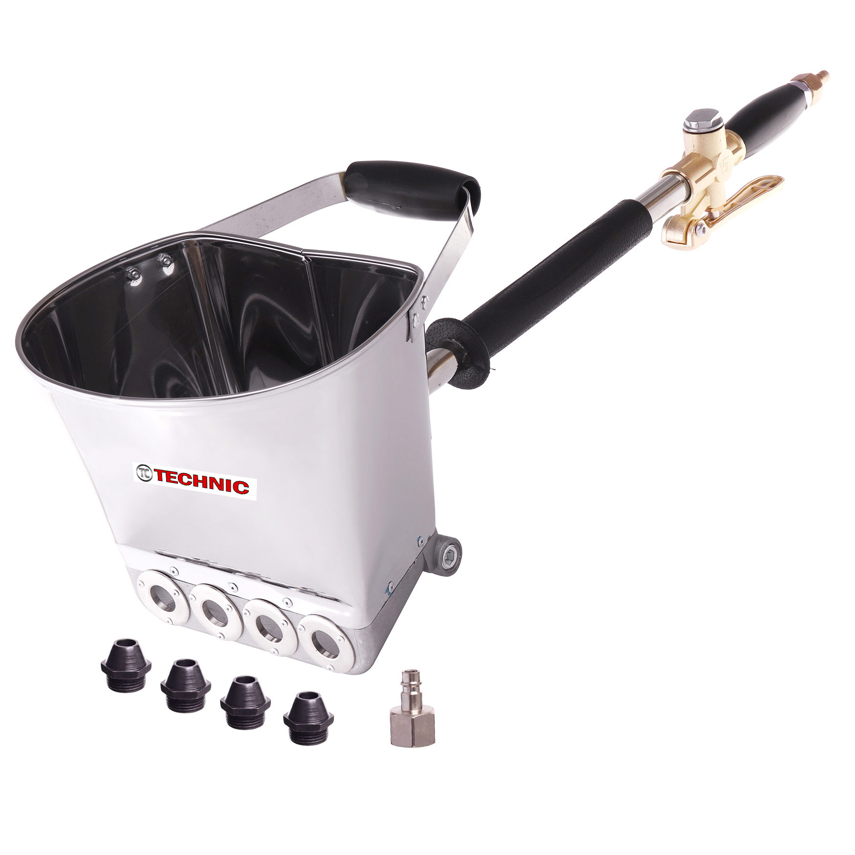 Omet z dodatnimi šobami na vijak! To niso plastične šobe z razcepko, ki bi jih bilo med delom težko zamenjati. Trpežne kovinske šobe zagotavljajo udobno delo in dolgo življenjsko dobo.