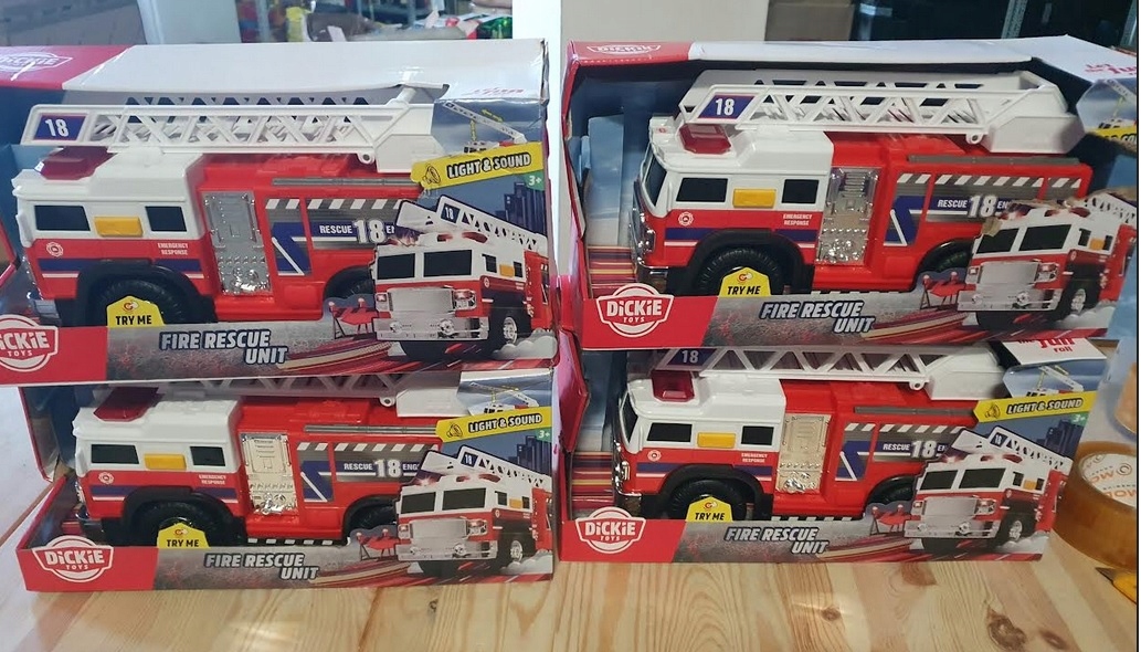 Interaktivne funkcije – Zgrabite svojo reševalno ekipo in se po veliki raztegljivi lestvi na zadnji strani tovornjaka hitro odpravite do ljudi, ujetih na vseh lokacijah. Reševalni tovornjak Dickie je fantastična igrača za malčke, ki radi igrajo junake dneva. S tehnologijo prostega teka se lahko premikajo po mestu od lokacije do lokacije, rešujejo ljudi pred nesrečami in mesto znova naredijo varno.