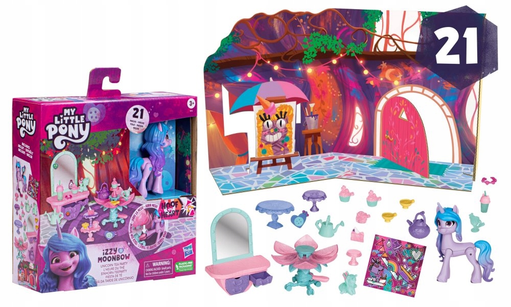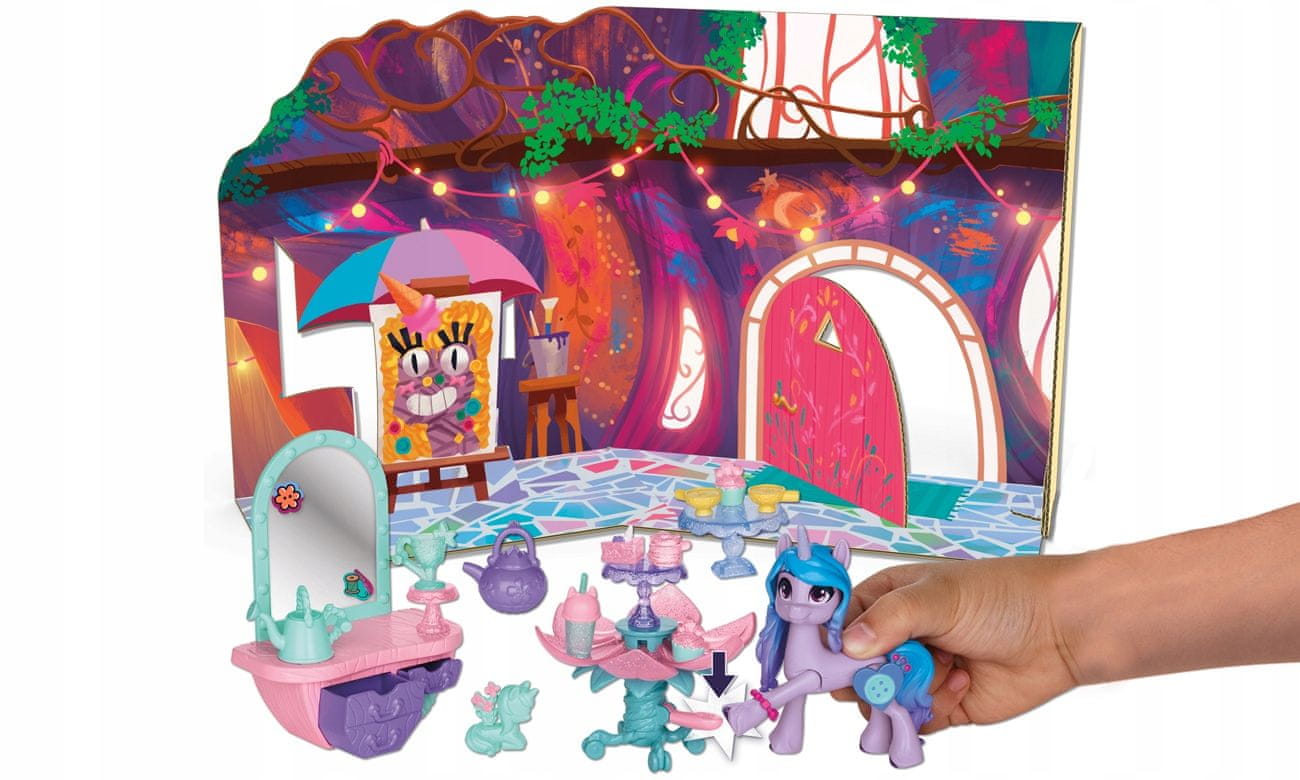 Moj mali poni: Čajanka je komplet, ki ga sestavljajo poni Izzy Moonbow in dvajset fantastičnih dodatkov, , s katerimi lahko zgradite živahen pravljični svet!