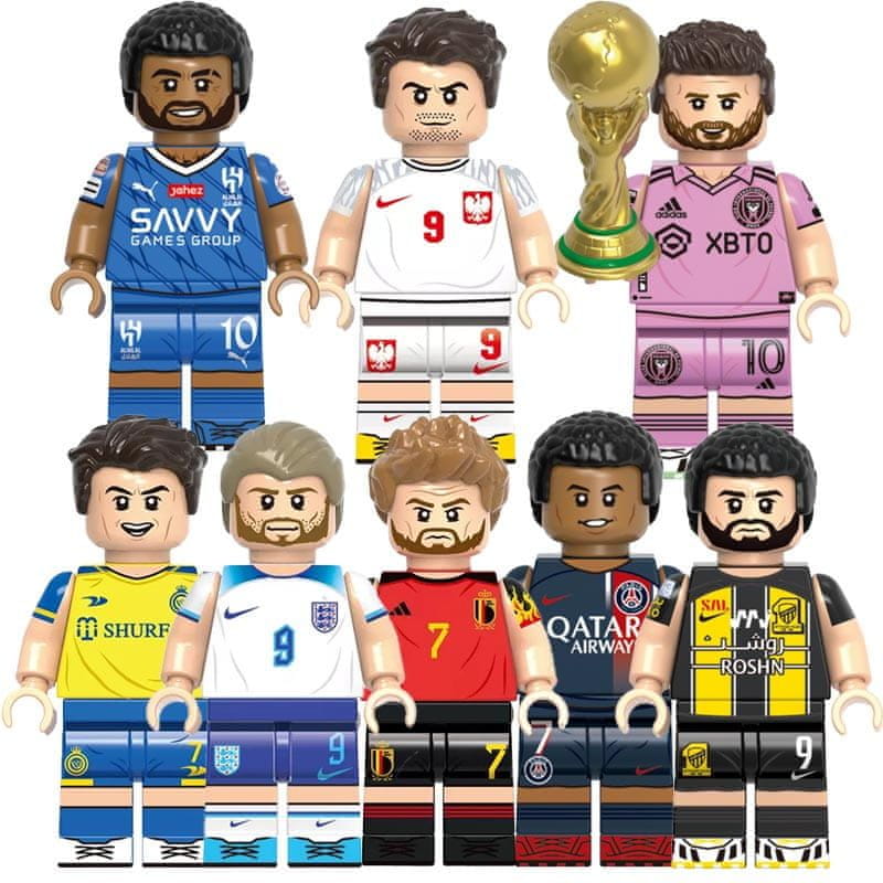 Ta ponudba vključuje figurice znanih nogometašev, vsaka s svojim imenom. Figurice imajo svoja imena natisnjena na dresih.