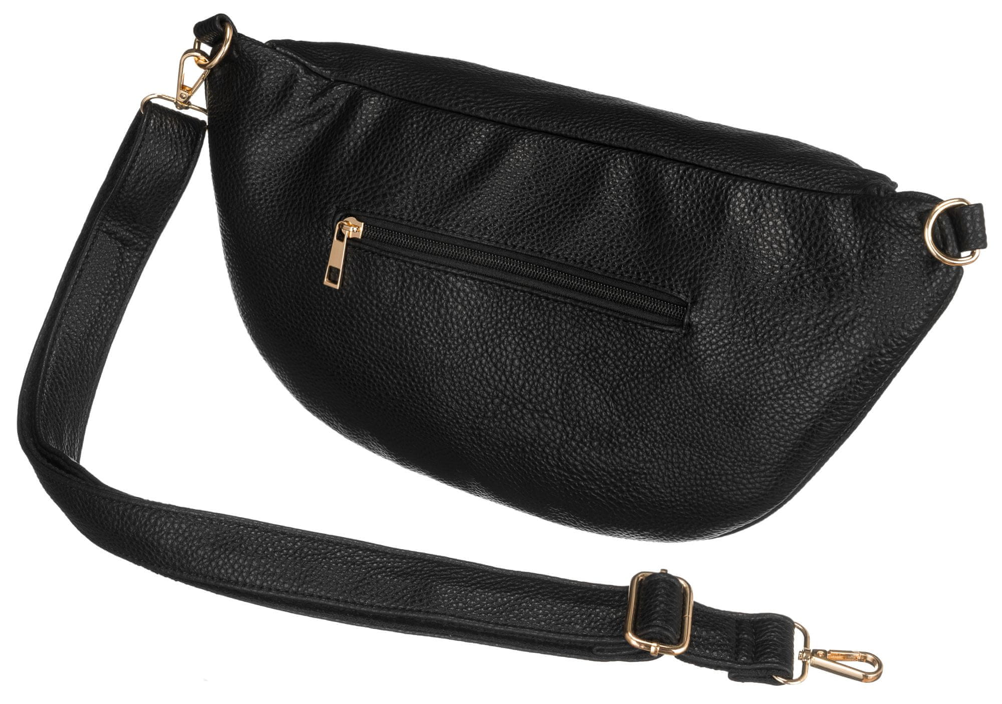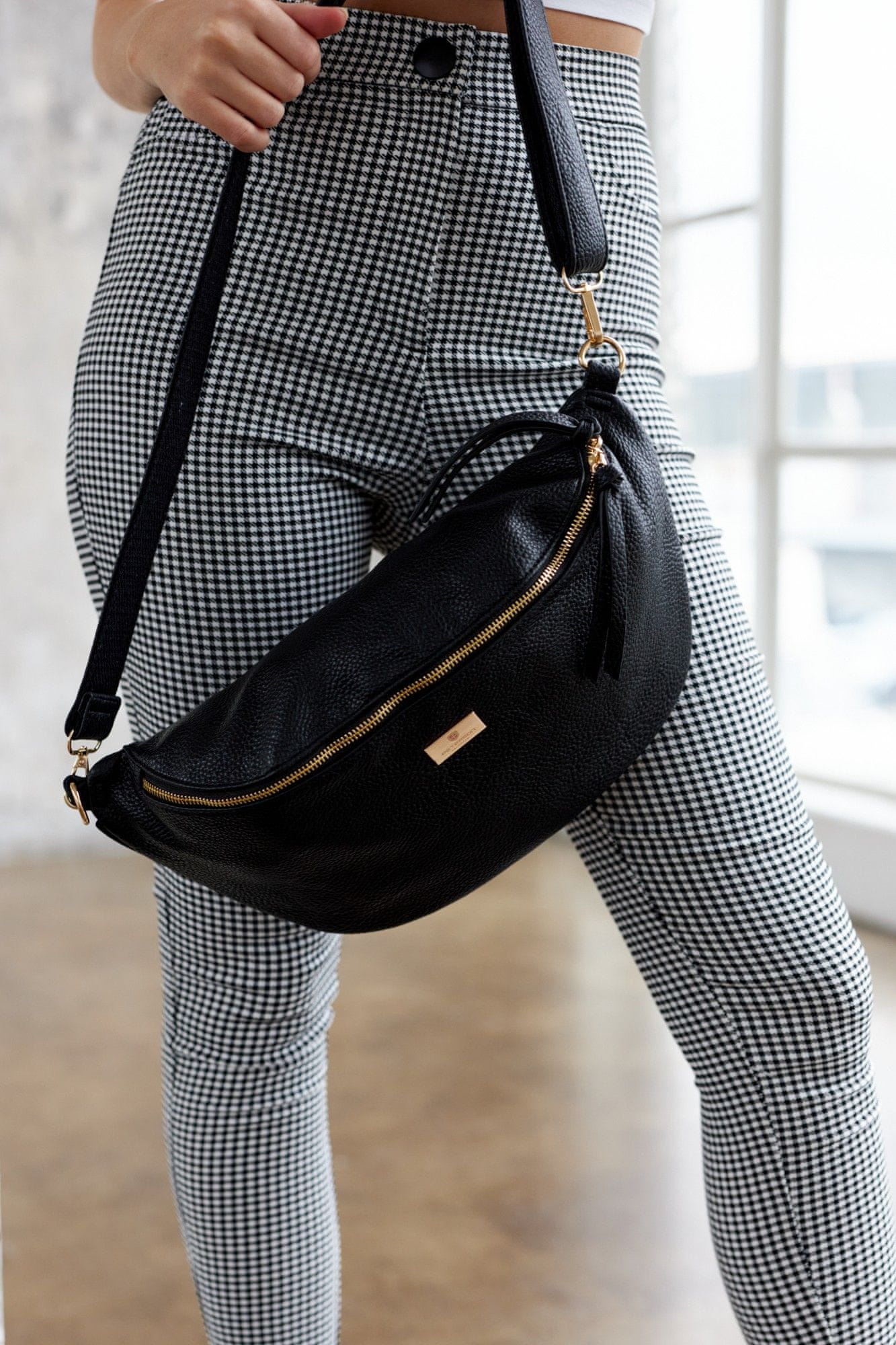 Torba z udobnim, dolgim ​​trakom, katerega dolžino je mogoče enostavno nastaviti. Ta rešitev vam omogoča, da nosite torbico okoli pasu ne le čez telesa kot klasično torbico za čez ramo, ampak tudi na bokih ali celo ustvarite majhen nahrbtnik čez eno ramo.
