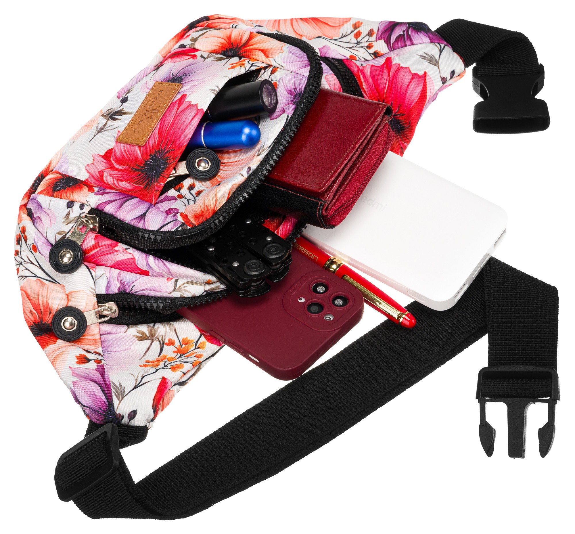 Cvetlični vzorec je odlična izbira za ženske, ki cenijo stil in udobje. Dopolnjuje tako športne kot ležerne obleke in jim daje ženstven pridih. Torbica za okoli pasu Rovicky®️ je odlična za mestne izlete, počitniške sprehode ali potovanja – povsod, kjer sta pomembna udobje in svoboda.