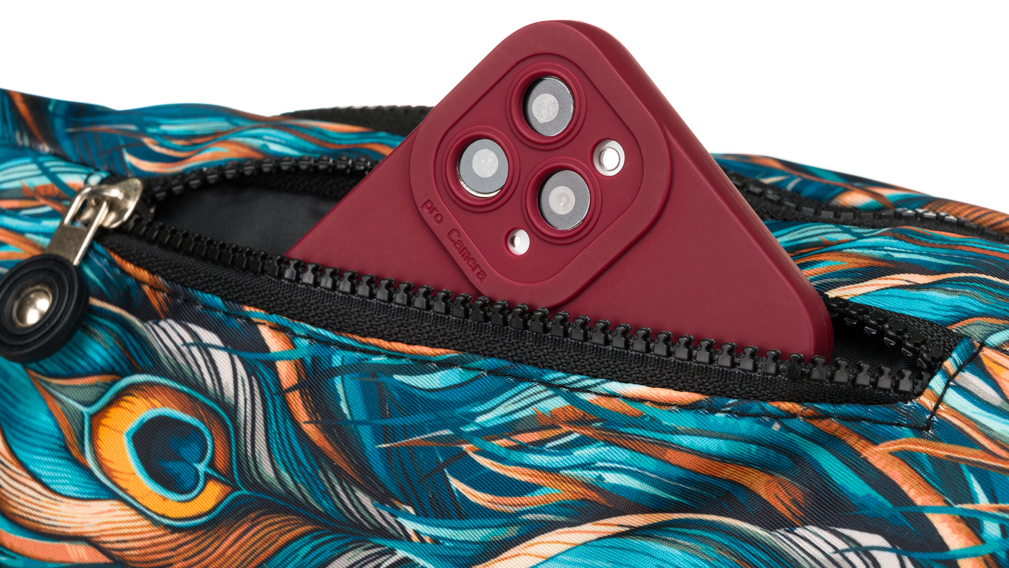 | Zahvaljujoč dolgemu traku lahko torbo nosite na boku ali čez telo. |