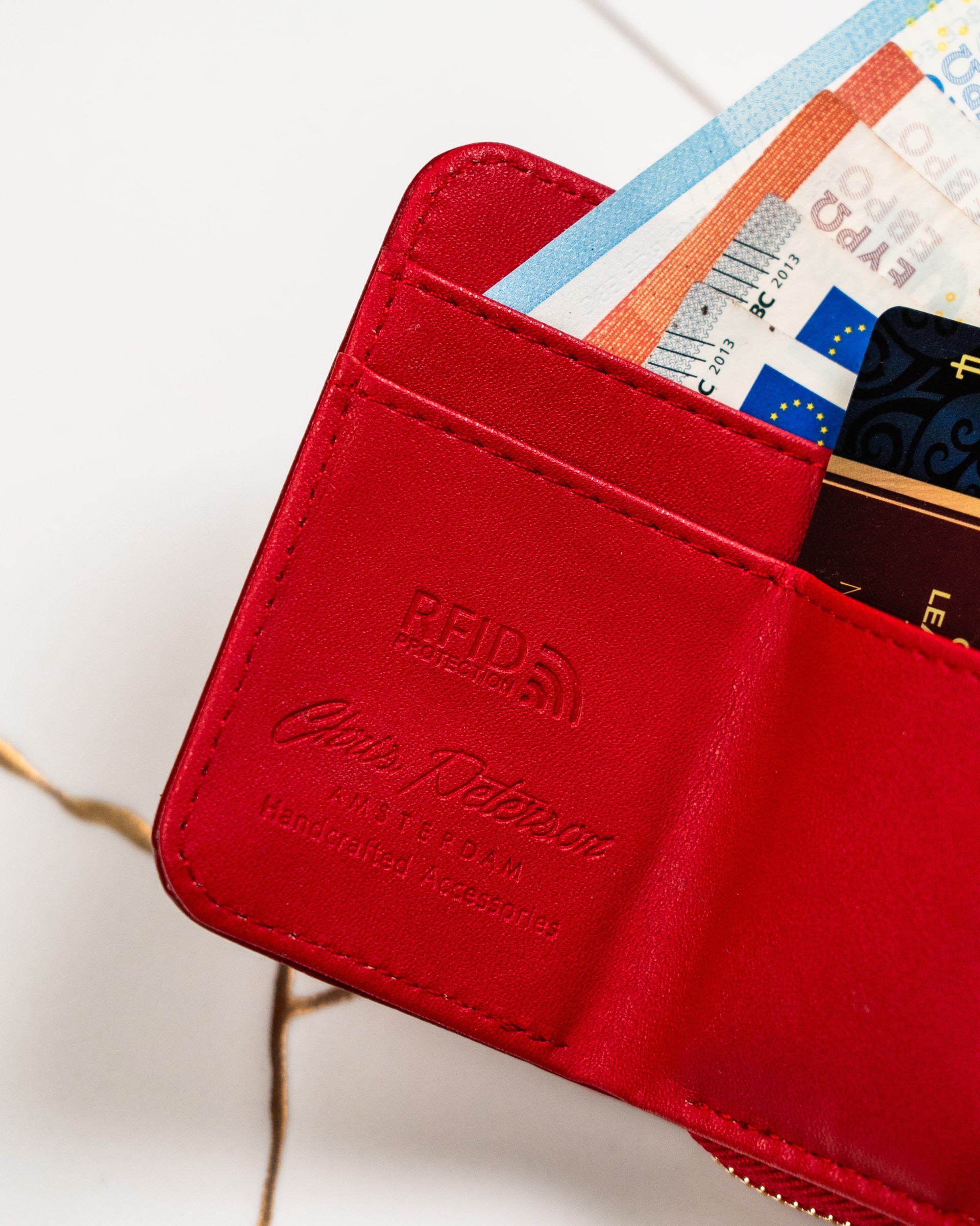 Denarnica opremljena s posebno podlogo s SISTEMOM RFID BLOKIRANJA ( R adio- F frekvenca ID entifikacija), ki ščiti bližinske kartice, biometrične dokumente, osebne izkaznice in kartice za javni prevoz pred nepooblaščenim branjem podatkov . Tehnologija preprečuje branje podatkov s posebnimi bralniki, ki se uporabljajo za krajo podatkov.