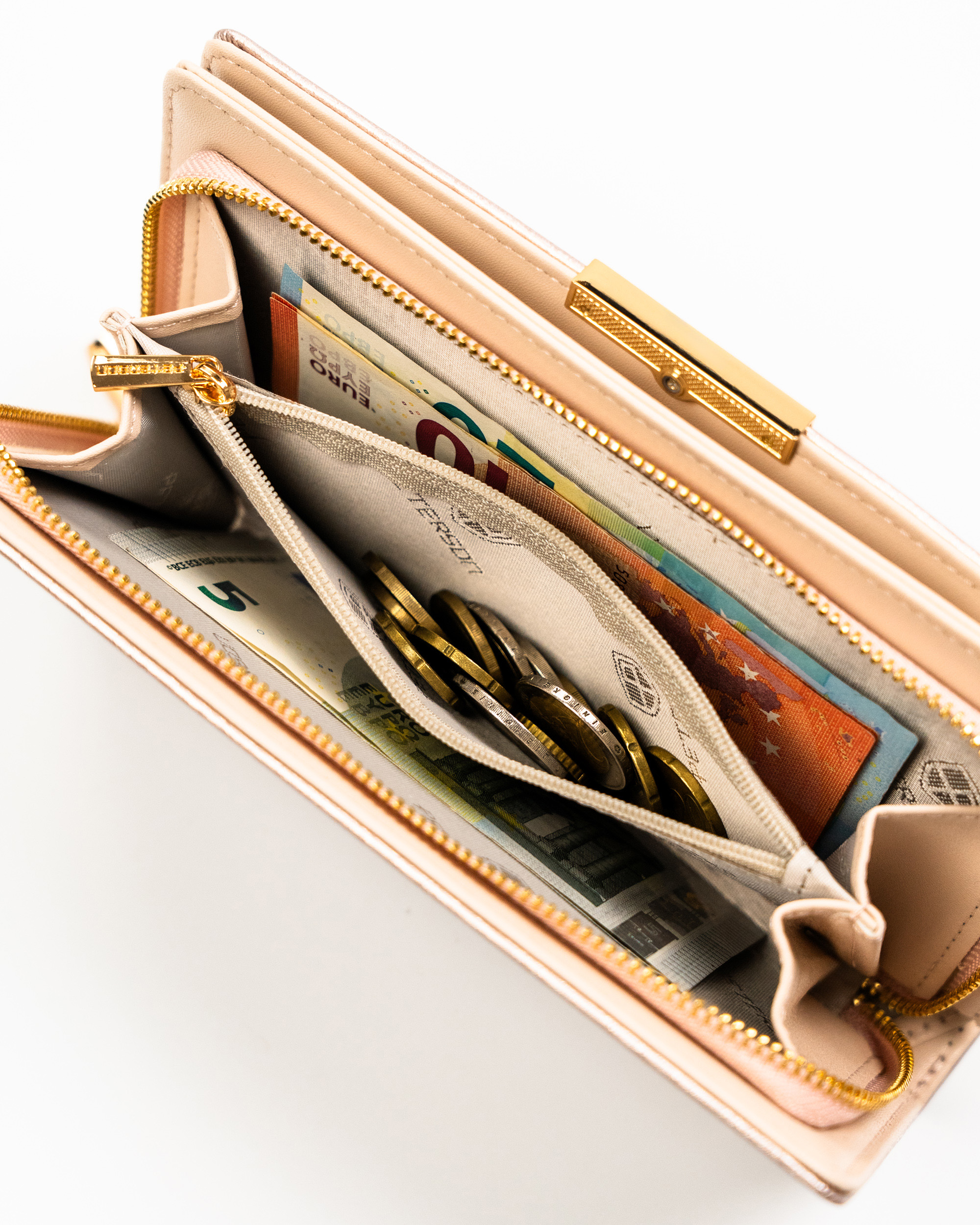 Dobro premišljena razporeditev predalov omogoča priročno shranjevanje kartic, dokumentov in gotovine. Našli boste prostor za vse, kar potrebujete – od kartic do bankovcev in kovancev.