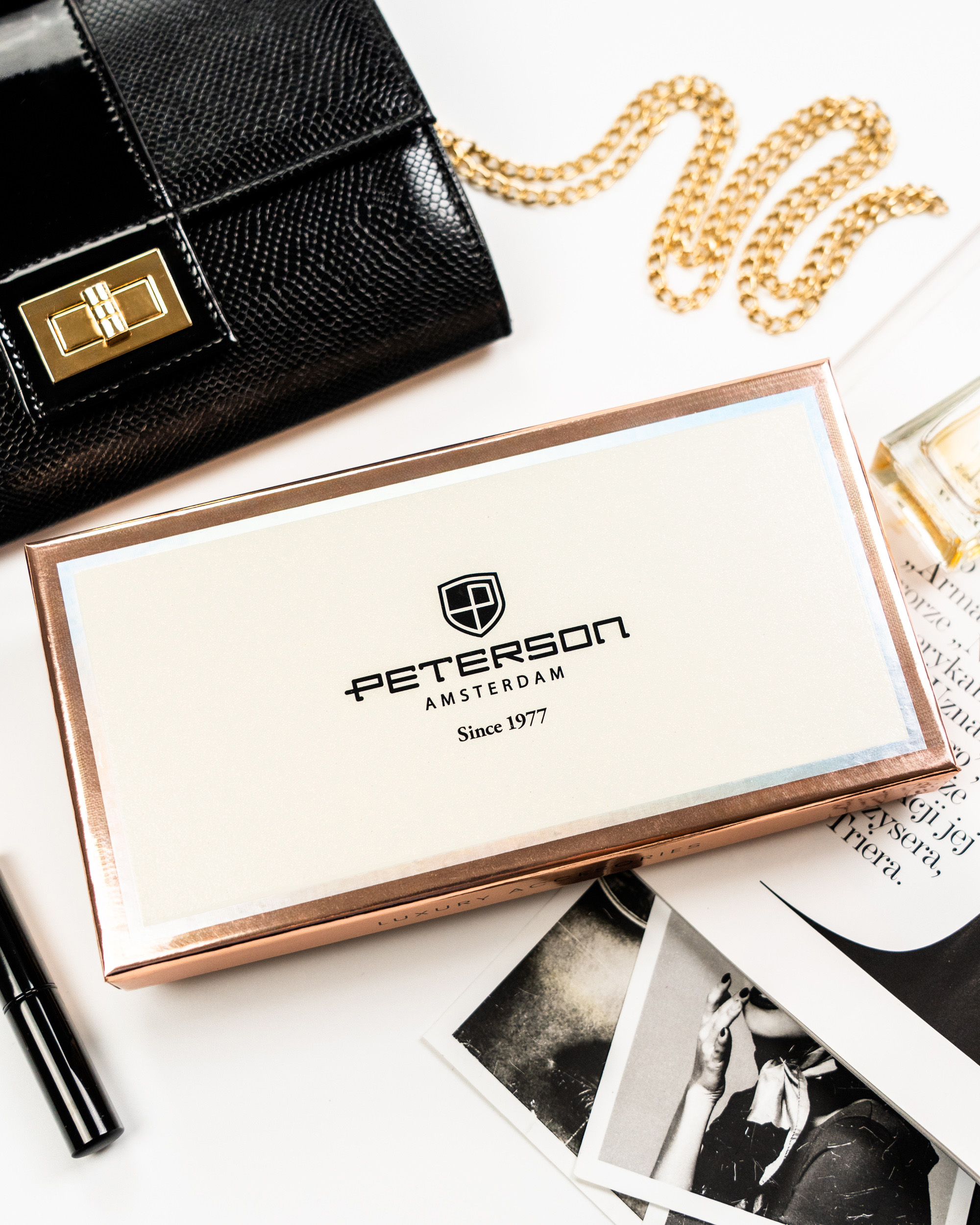 Dodatki blagovne znamke Peterson® uživa izjemno priljubljenost. Vsak izdelek je zasnovan v skladu s trenutnimi trendi in odraža izviren ter brezčasen slog. Bogastvo barv in vzorcev ter visokokakovostna izdelava so zaščitni znak blagovne znamke.