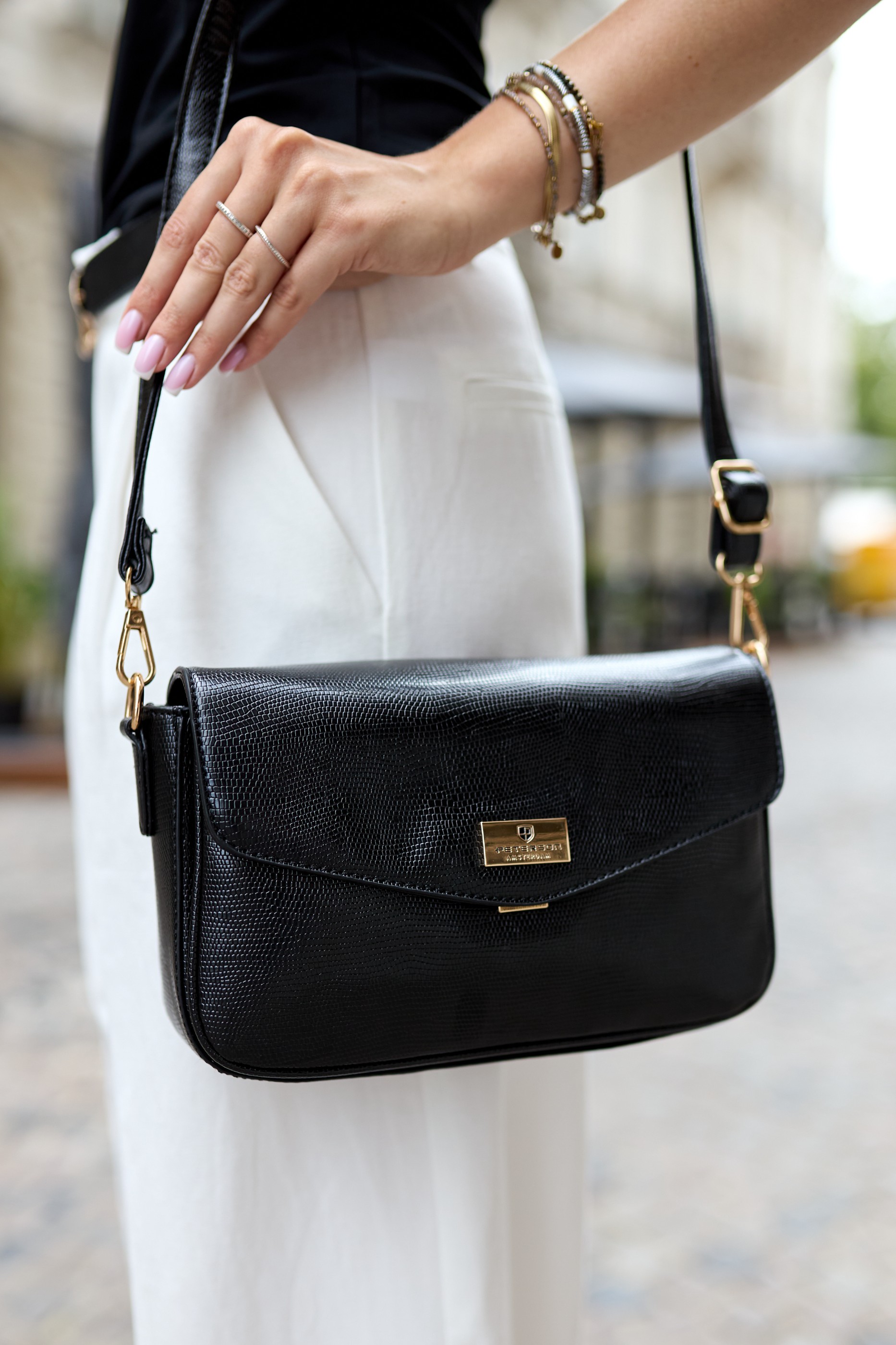 PETERSON Ženska klasična torba za čez ramo z zavihkom, elegantna tekstura