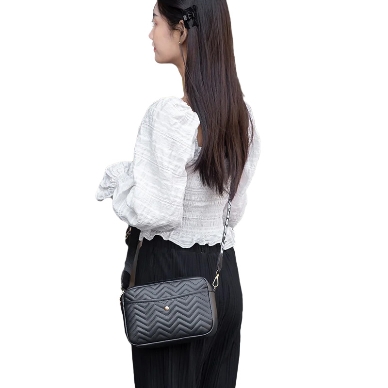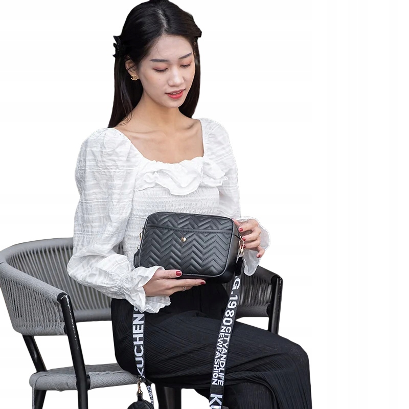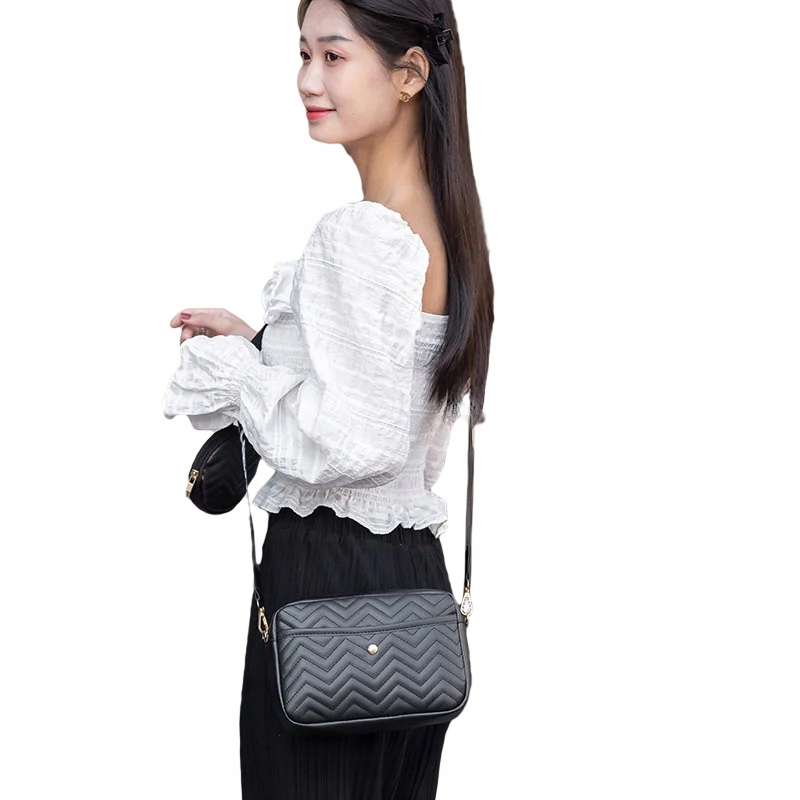 shumee Ženska torba za čez ramo, črna, EKO USNJE, komplet 2 kosov, Chevron