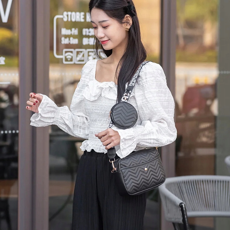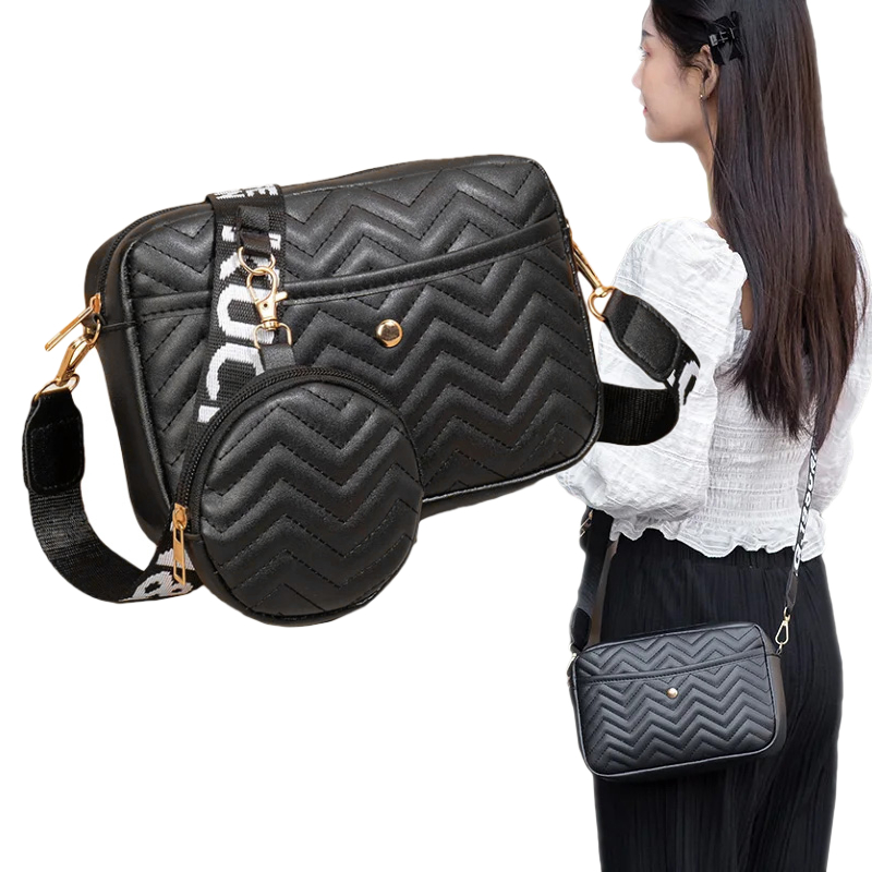- Dopolnilni komplet: Ta dvodelni komplet omogoča prilagodljive prilagoditve vašim potrebam – večja torba za čez ramo za pomembne izlete in manjša za hitre opravke.
