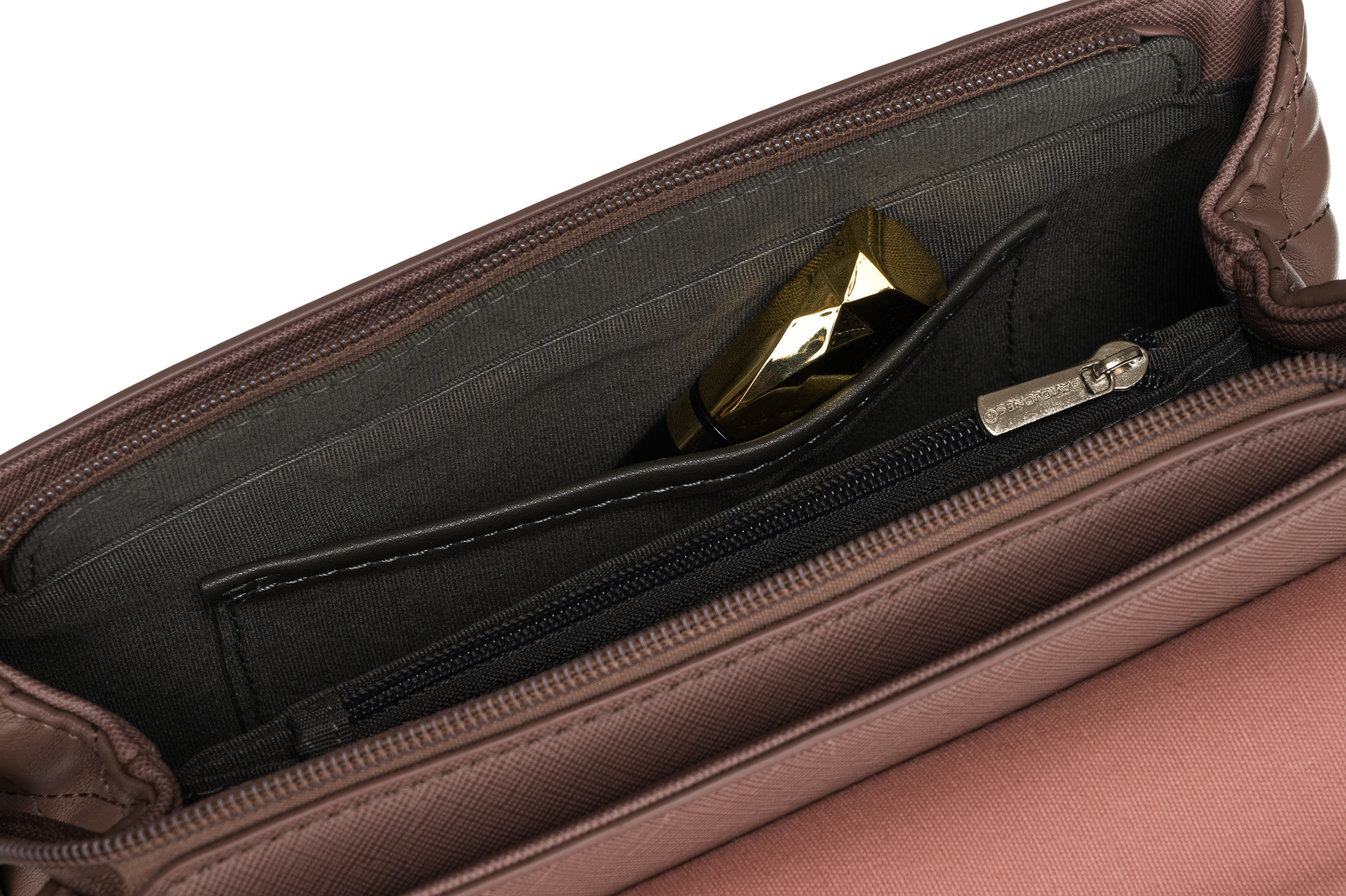 | Notranjost je podložena s praktično sivo podlogo, ki ne pušča sledi. Ta obdelava je bistvenega pomena, če želite, da notranjost vaše torbe čez ramo ostane v brezhibnem stanju še vrsto let! |
