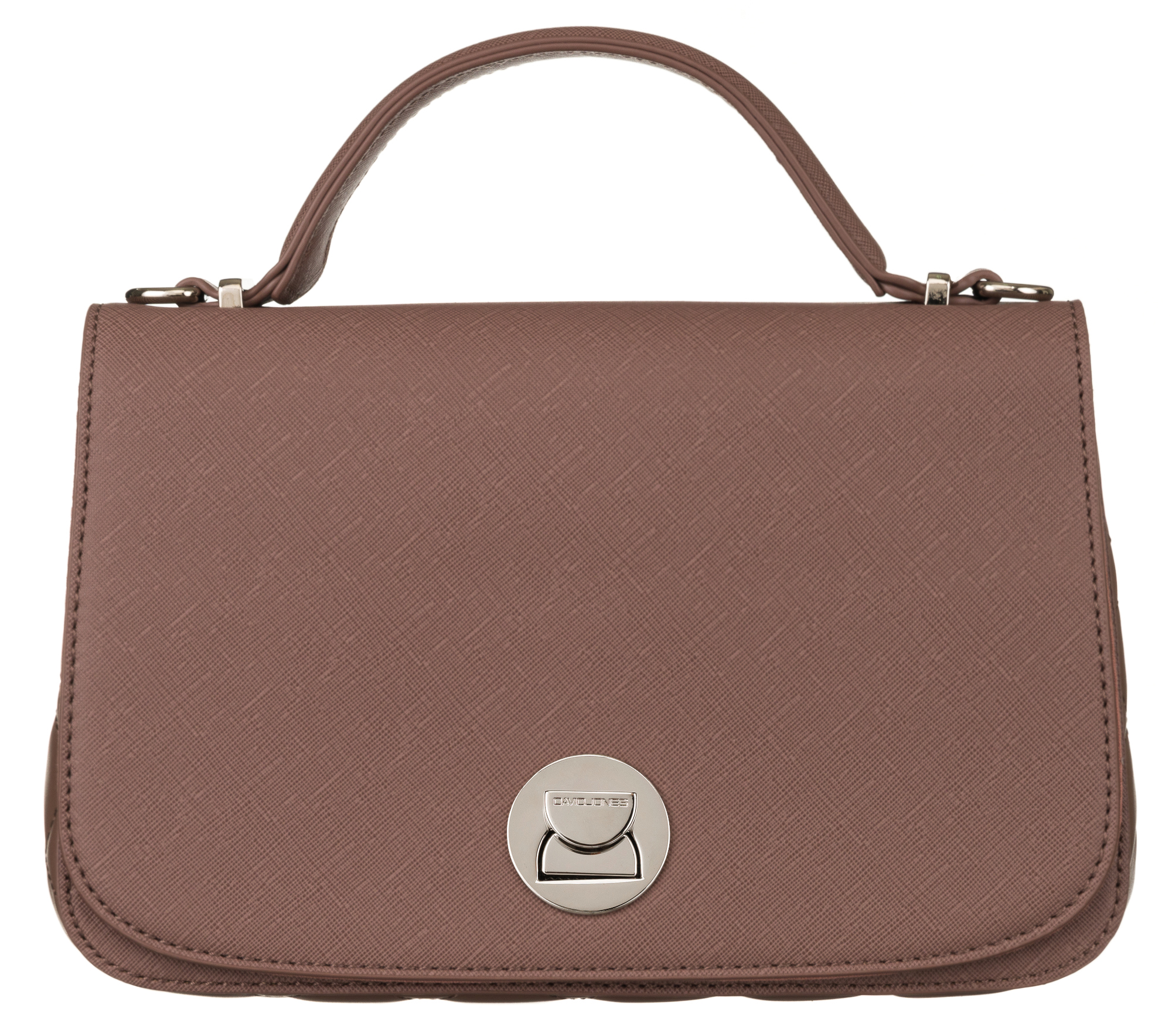 | Torba čez ramo, obešena na dolg, nastavljiv trak z masivnim kovinskim zapiranjem. Poleg tega ima ročaj za nošenje v roki. |