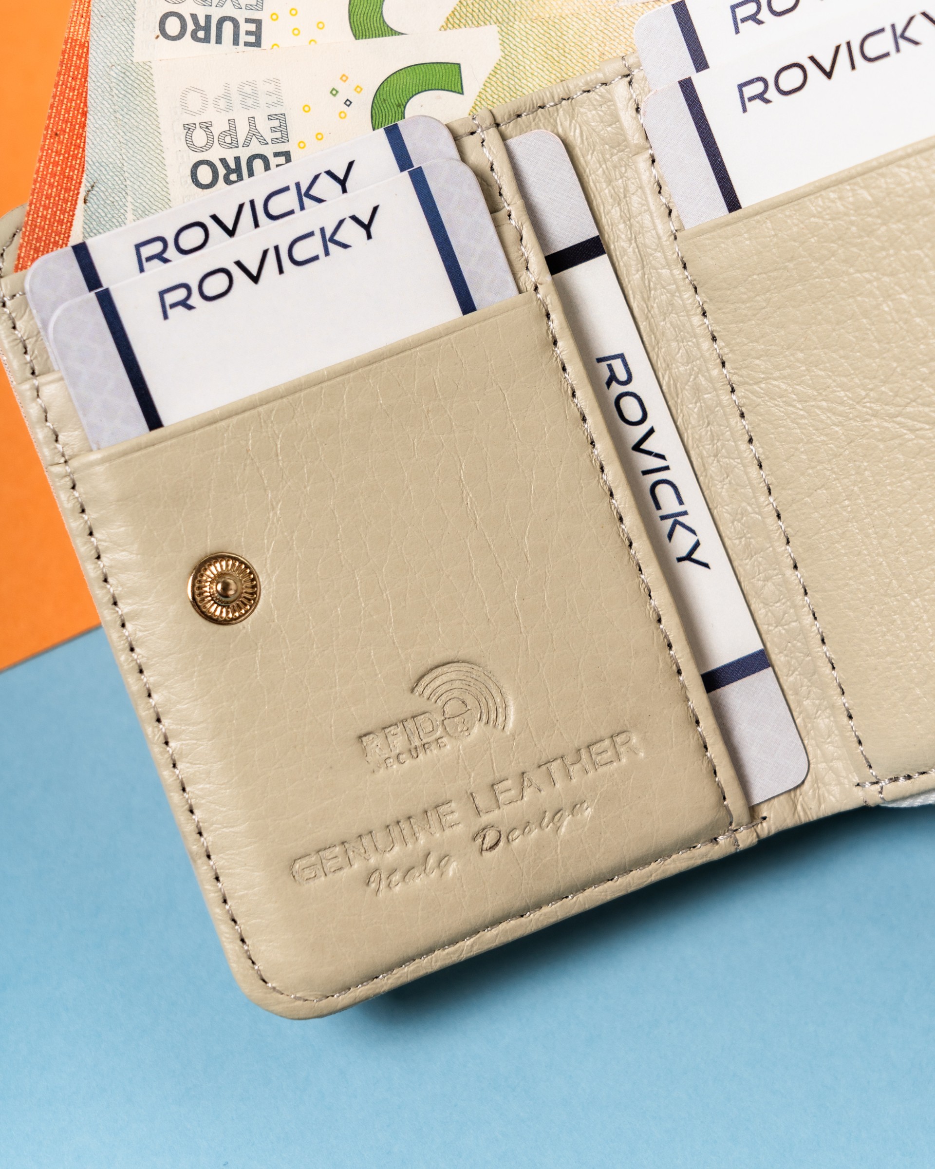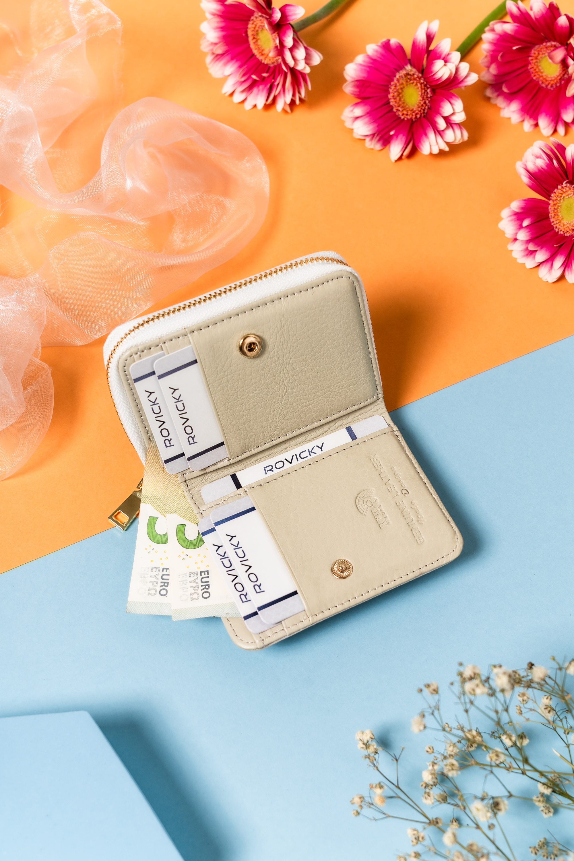Majhna ženska denarnica iz sijočega usnja za RFID kartice STOP Lorenti