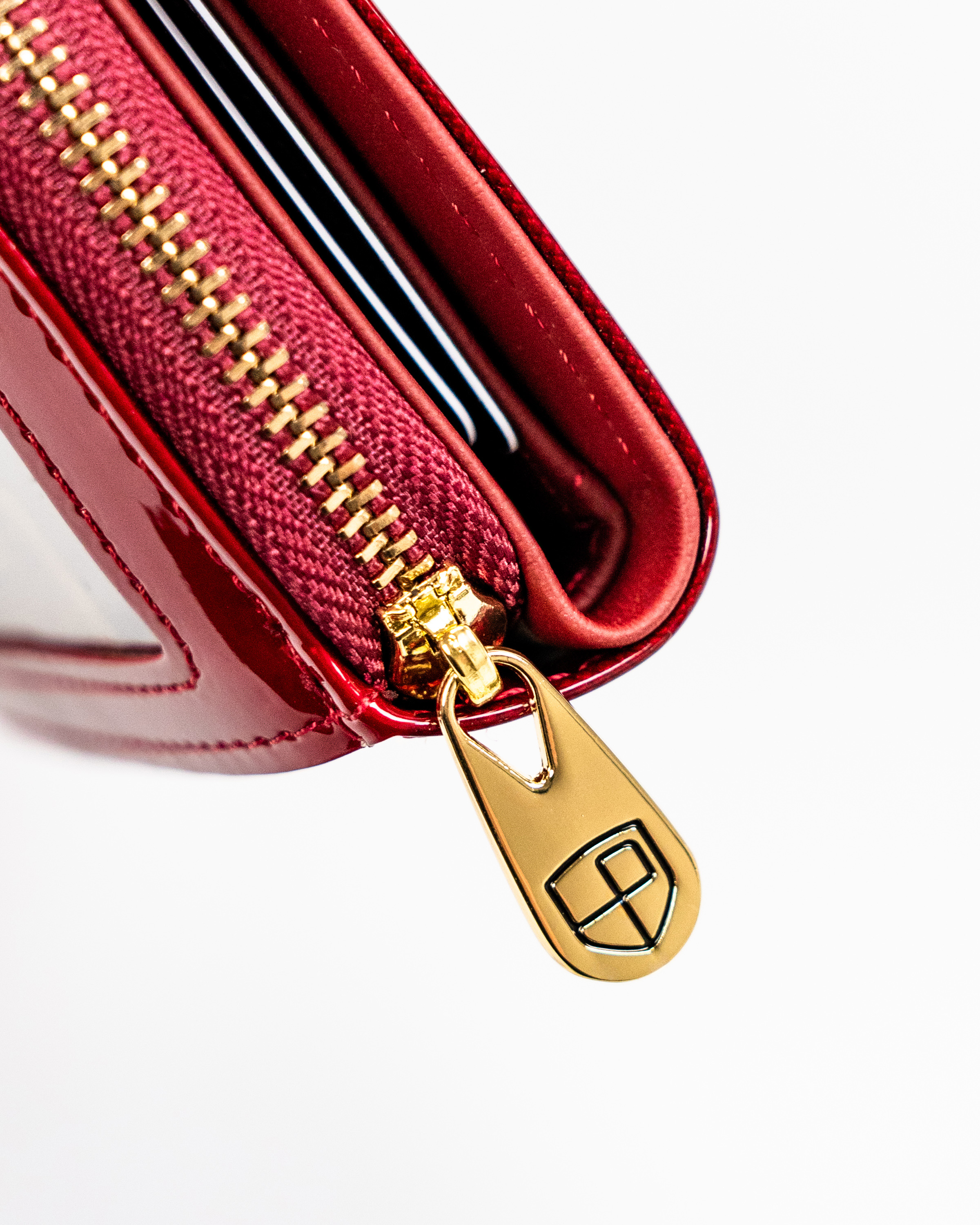✅ Intenzivna, rdeča barva lakasto usnje safiano, pritegne pogled in poudari edinstven značaj denarnice.