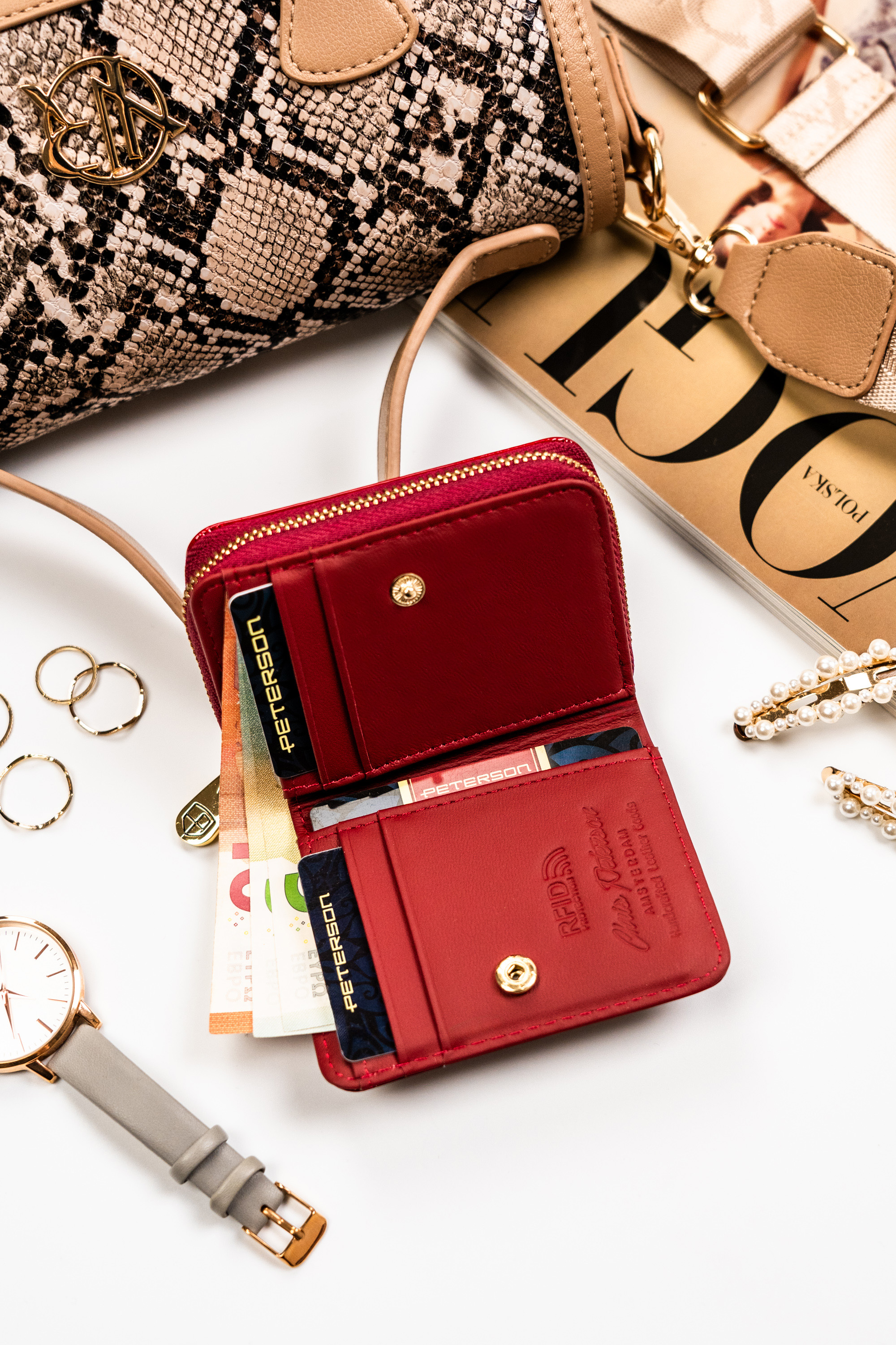 Ženska denarnica Peterson iz saffiano usnja z RFID zaščito, zadrgo in zaponko