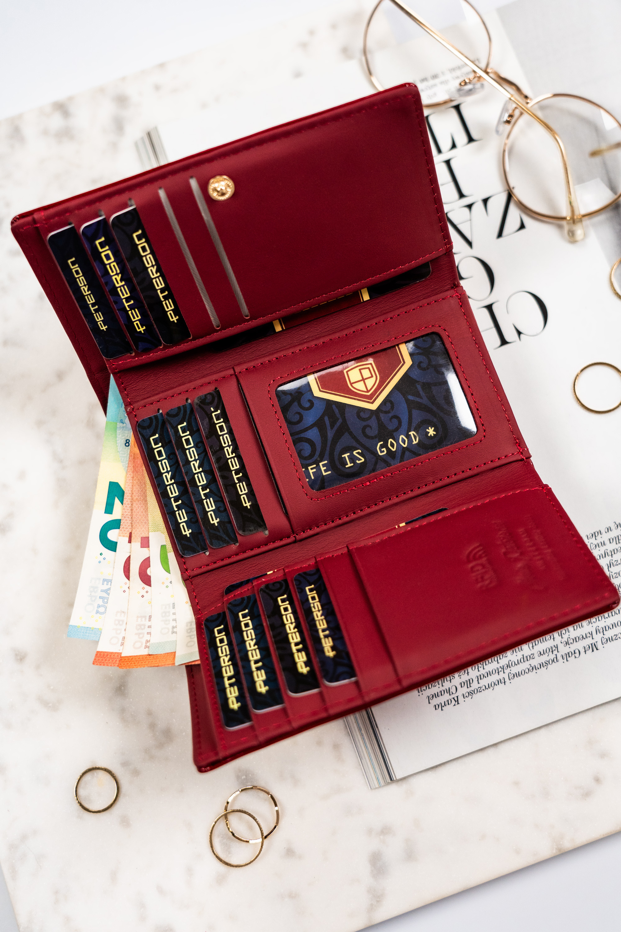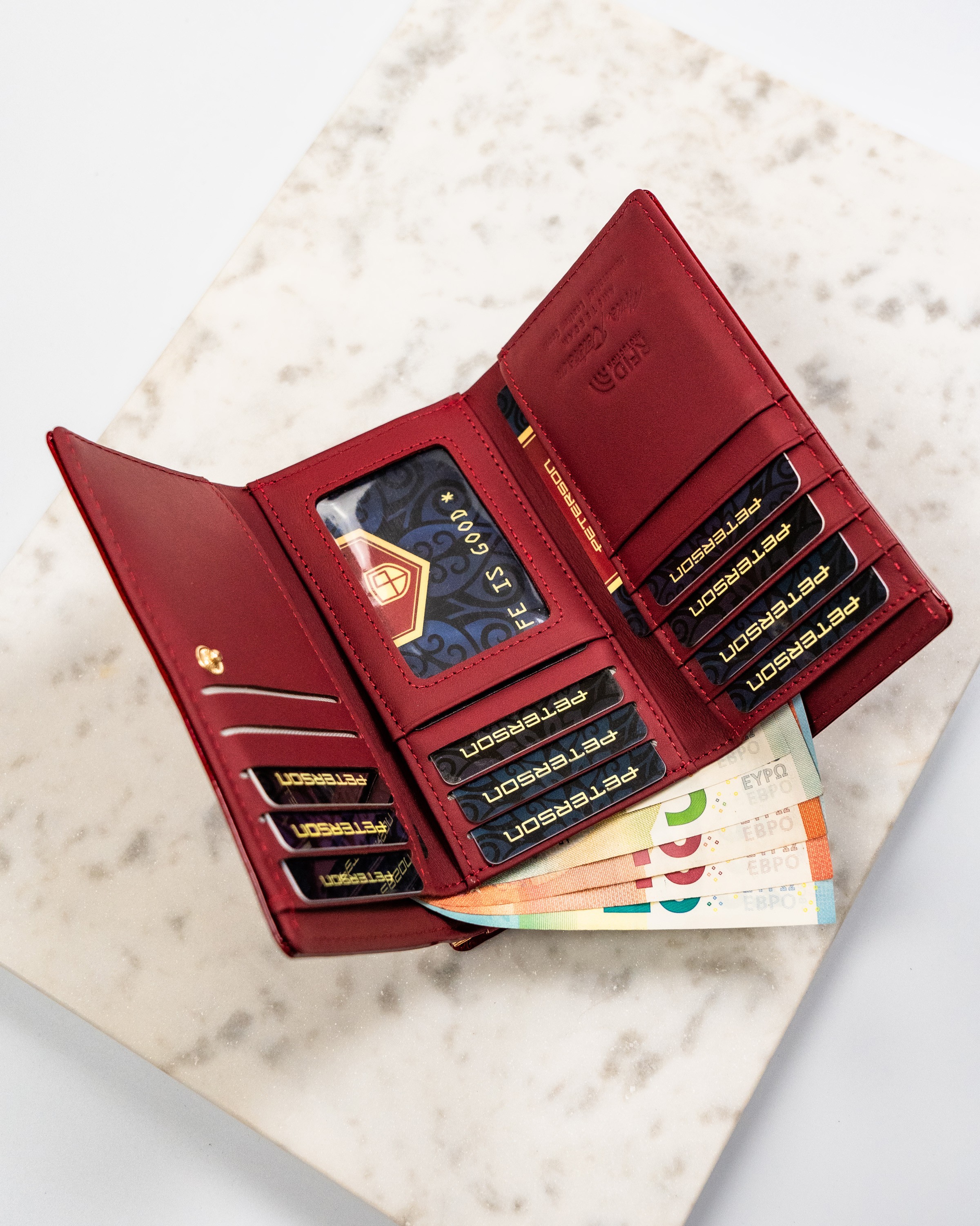 ✅ Sprednji del denarnice je okrašen s subtilnim, a izrazitim logotipom Peterson®, ki se popolnoma ujema s celotnim dizajnom in poudarja njegov ekskluzivni značaj.