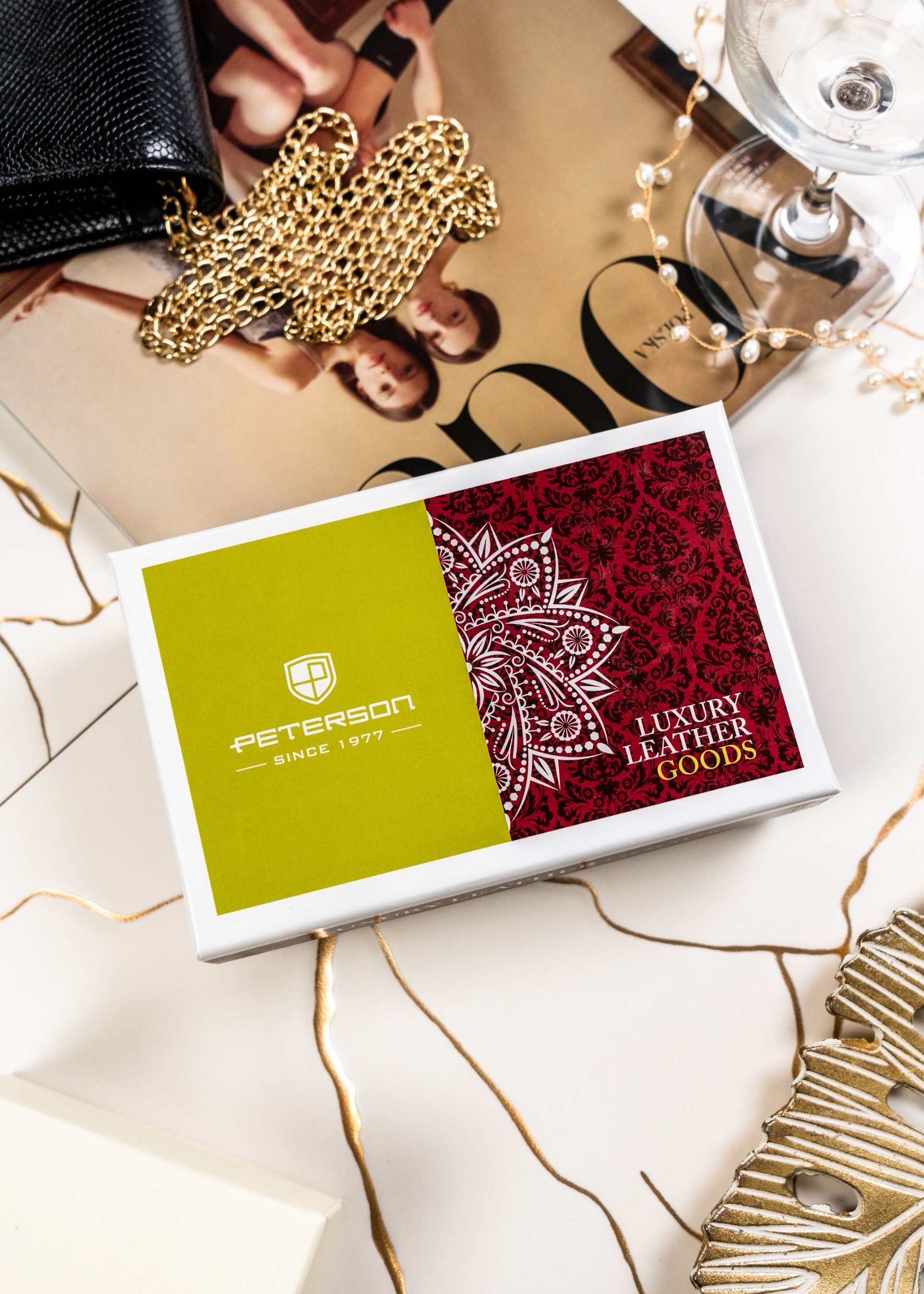 Ženska denarnica PETERSON, elegantna, pravo usnje, s kavljem, RFID zaščita