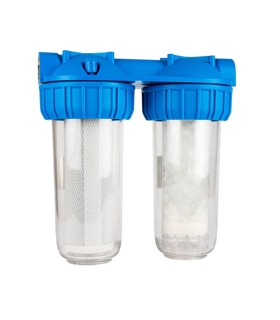 Sestavljeni kompleti so namenjeni montaži na vhodu vode v manjši objekt. Mehčalni dvojček je sestavljen iz filtrirnega vložka s polifosfati, ki učinkovito preprečujejo nalaganje vodnega kamna na grelnikih in notranjosti vodovodnih cevi. Sledi filter z aktivnim ogljem, ki iz vode odstranjuje klor, slab vonj in okus.