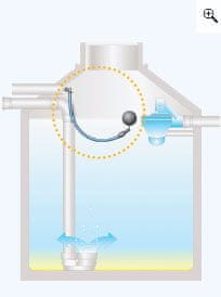 3P plavajoči odjem drži sesalni koš 15–20 cm pod vodno gladino, kjer se nahaja najčistejša voda. 3P plavajoči odjem je pomemben element za črpanje kar najbolj čiste deževnice (označen kot Korak 4. do čiste deževnice). Celoten opis
