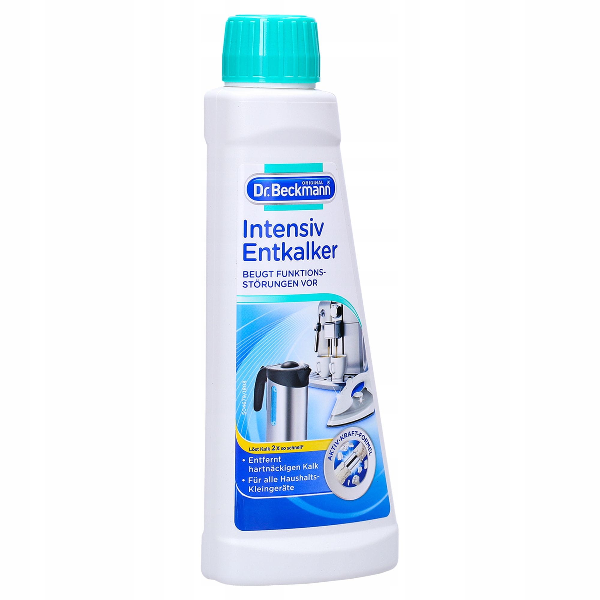 Sredstvo za odstranjevanje vodnega kamna 250 ml Hitro in temeljito odstrani trdovraten vodni kamen Za vse majhne gospodinjske aparate, kot so grelniki vode, kavni avtomati, parni likalniki in likalniki Dvojno močna formula: deluje dvakrat hitreje kot tradicionalna sredstva za odstranjevanje vodnega kamna na osnovi citronske kisline Obloge vodnega kamna ne le da so videti slabo, ampak lahko tudi poslabšajo delovanje aparata ali povzročijo povečano porabo energije. Formula za odstranjevanje vodnega kamna Dr. Beckmann bistveno bolje odstranjuje vodni kamen in omogoča hiter in učinkovit postopek odstranjevanja vodnega kamna. Na ta način lahko odstranite vodni kamen ne le iz grelnikov vode, temveč tudi iz kavnih avtomatov s kapsulami in preprečite okvare v svojih aparatih. Odstranjevanje vodnega kamna: likalniki, parne postaje, parni kuhalniki, kuhalniki jajc, aparati za espresso, kavni avtomati, avtomatski kavni avtomati, aparati za kavo s kapsulami, čajniki, grelniki vode. Koristni nasveti: Izdelek in njegove raztopine lahko poškodujejo občutljive površine in materiale, občutljive na kisline (npr. marmor, emajl, srebro, cinkove površine). Pred odstranjevanjem vodnega kamna odstranite vodni filter (če je nameščen) in ga po končanem postopku ponovno vstavite. Hraniti izven dosega otrok. Kako deluje: Aparati za kavo/čaj: V rezervoar za vodo nalijte 500 ml vode in dodajte 50 ml (približno 1/2 skodelice) sredstva za odstranjevanje vodnega kamna. V primeru velike količine vodnega kamna ali če je kavni aparat velik, sorazmerno povečajte količino vode in sredstva za odstranjevanje vodnega kamna. Vklopite kavni aparat in zaženite program za odstranjevanje vodnega kamna ali pustite, da raztopina steče skozi aparat. Po končanem postopku odstranjevanja vodnega kamna kavni aparat dvakrat sperite (vsakič s celotnim rezervoarjem za vodo). Grelnik vode V grelnik vode nalijte 50 ml sredstva za odstranjevanje vodnega kamna (približno 1/2 skodelice) in dolijte 1/2 litra vode. Ne segrevajte. V raztopini se bodo takoj pojavili mehurčki. Odstranjevanje vodnega kamna iz grelnika vode je končano, ko mehurčki izginejo. Za velike količine vodnega kamna uporabite 100–150 ml sredstva za odstranjevanje vodnega kamna, nalijte toliko vode, da prekrije celoten vodni kamen, in pustite stati 10–15 minut. Nato grelnik vode izpraznite in temeljito sperite z vodo. Drugi likalniki Likalne postaje s paro Parni kuhalniki Kuhalniki za jajca Pred odstranjevanjem vodnega kamna preberite uporabniški priročnik, ki je priložen napravi.
