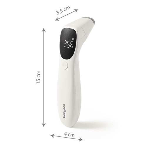 Babyono brezkontaktni termometer vam omogoča hitro in natančno merjenje temperature otrokovega čela ali ušesa. Vse, kar morate storiti, je, da pritisnete gumb in v sekundi boste dobili natančen rezultat. Zaradi tihega vibrirajočega alarma in luči LED lahko izmerite temperaturo tudi, ko otrok spi. Zahvaljujoč elegantnemu osvetljenemu zaslonu LED lahko rezultate enostavno preberete tudi ponoči.