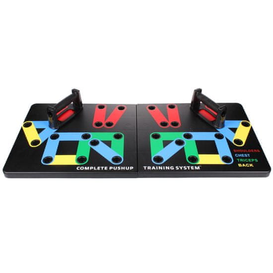 Multifunkcionalna deska za potiskanje Merco Excellent Splice je zasnovana za vadbo in krepitev tricepsov, prsnega koša in hrbta. Preprosto nastavite priložene opore glede na barvno označene položaje na deski in že ste pripravljeni za začetek vadbe. Zložljiva deska in nasloni za roke so izdelani iz trpežne plastike ABS, nasloni za roke pa so opremljeni s silikonskimi nedrsečimi ročaji. Vadbena deska Excellent Splice je sestavljena iz dveh delov, ko je sestavljena, ima mere (d x š x v) 90 × 39 × 3 cm in tehta manj kot 2,2 kg, ročaji naslonjal za roke so široki 13 cm. Deska ponuja 14 nastavitev vadbenih položajev: 4 za ramena (rdeča), 3 za tricepse (zelena), 5 za prsni koš (modra) in 2 za hrbet (rumena). Zaradi tega je večnamenska plošča Excellent Splice idealen dodatek za vsako domačo telovadnico ali šolsko telovadnico.