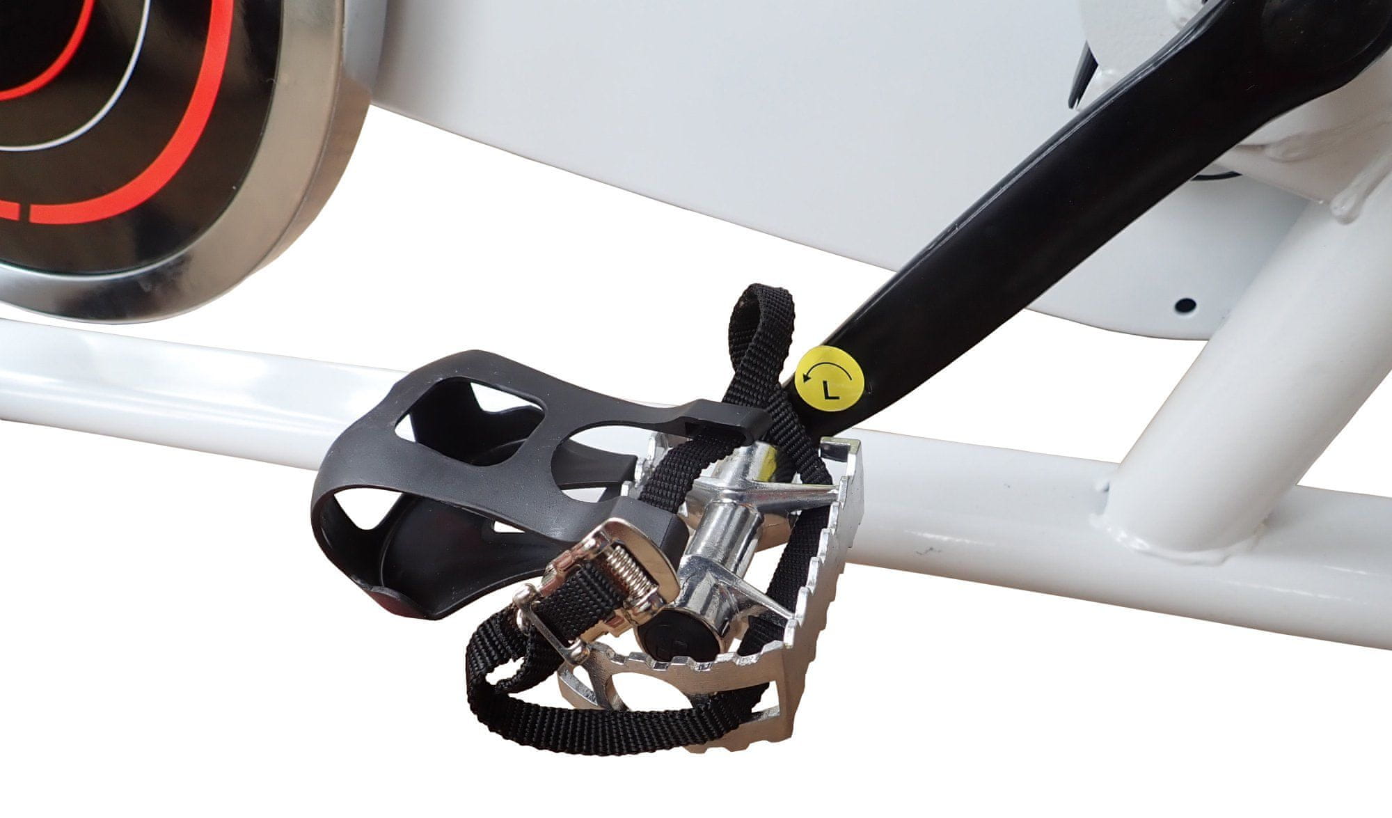 Za varnost med vadbo skrbi varnostna hitra zavora za hitro zaustavitev kolesa z utežmi. Stabilnost in vzdržljivost zagotavlja robustna jeklena konstrukcija naprave, ki jo dopolnjuje več praktičnih dodatkov. Zlasti kovinski nosilec s steklenico za pitje iz nerjavnega jekla, ki zagotavlja ustrezno hidracijo. Na voljo pa je tudi ciklocomputer, ki omogoča spremljanje osnovnih podatkov o treningu, kot so čas, prevožena razdalja, porabljene kalorije, hitrost in srčni utrip, prek senzorjev v ročajih trenažerja.